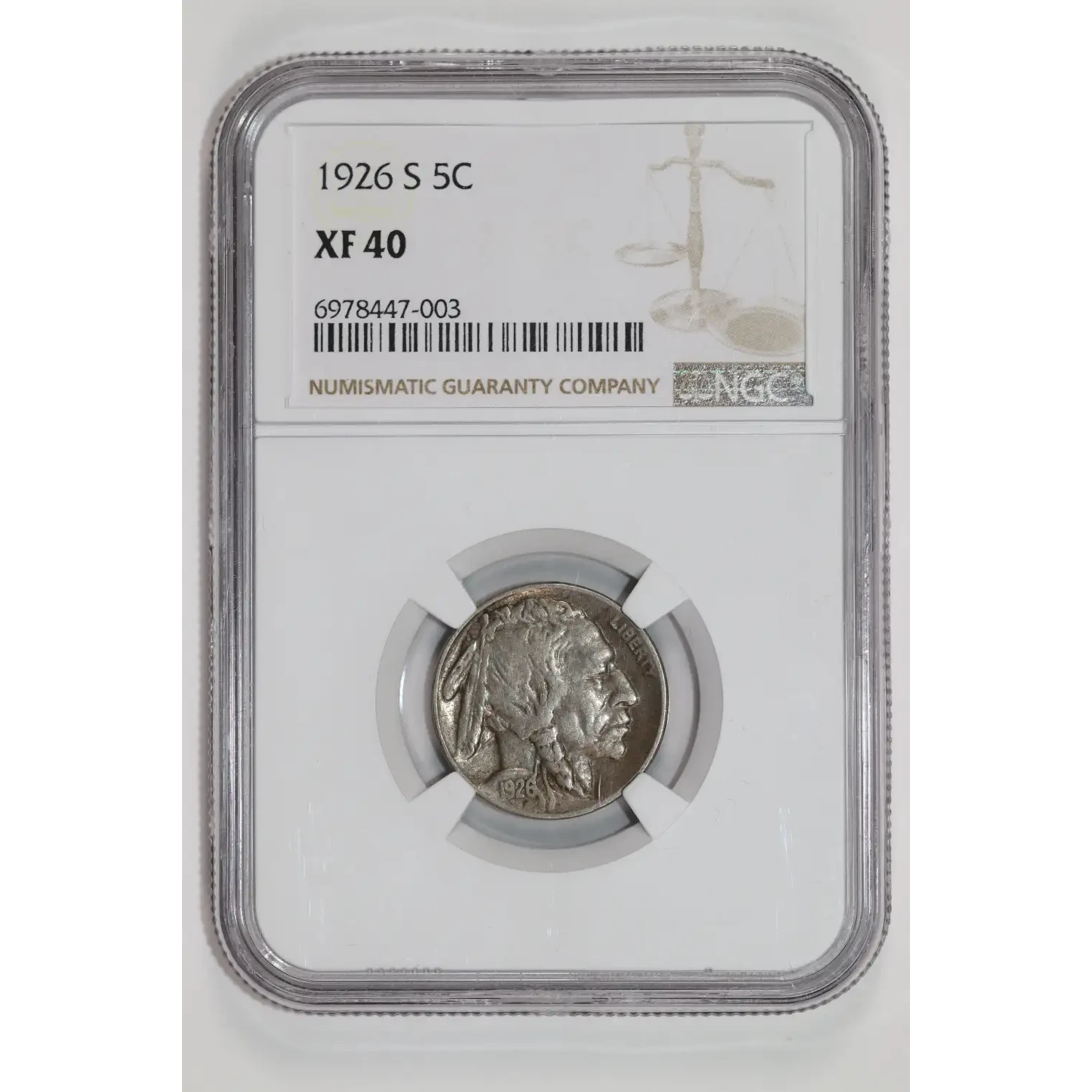 1926-S Nickel Indian Head or Buffalo NGC XF-40