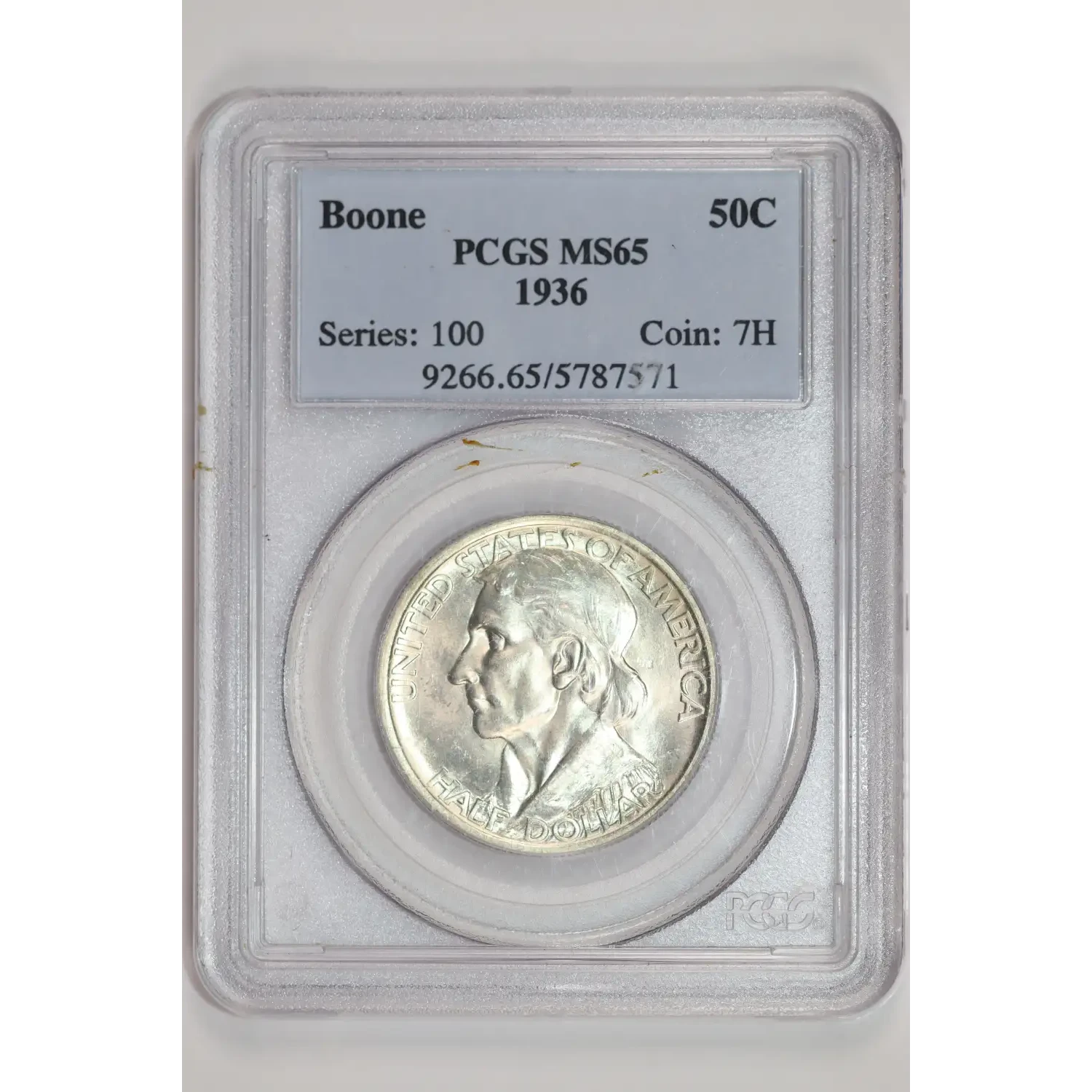 1936 BOONE COMMEMORATIVE HALF DOLLAR PCGS MS65