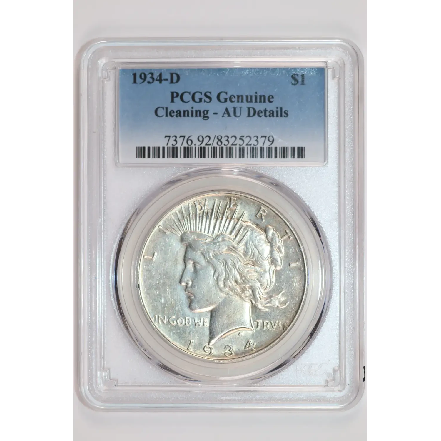 1934-D Peace Silver Dollar PCGS Genuine - AU Details (92 - Cleaned)