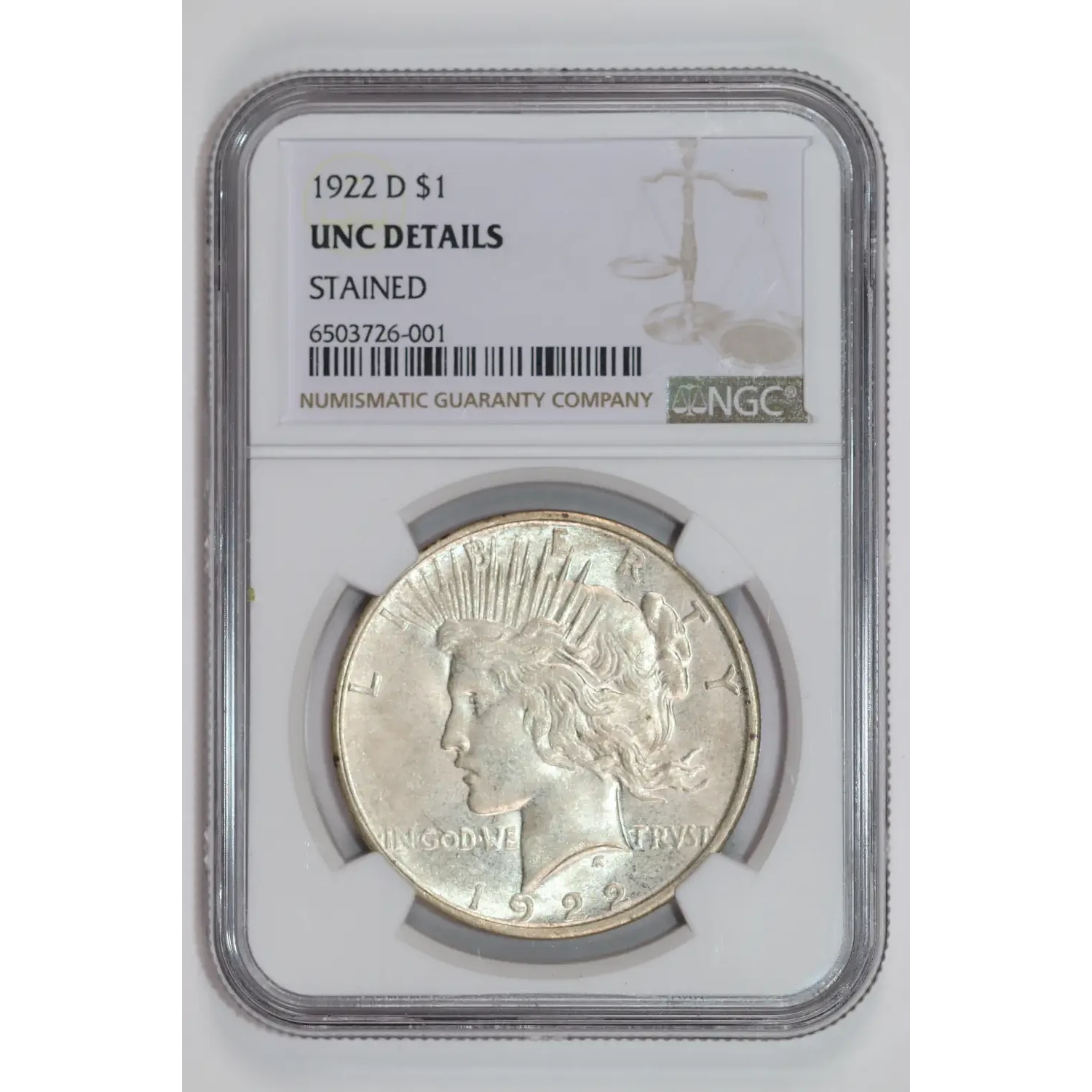 1922-D PEACE DOLLAR NGC UNC DETAILS