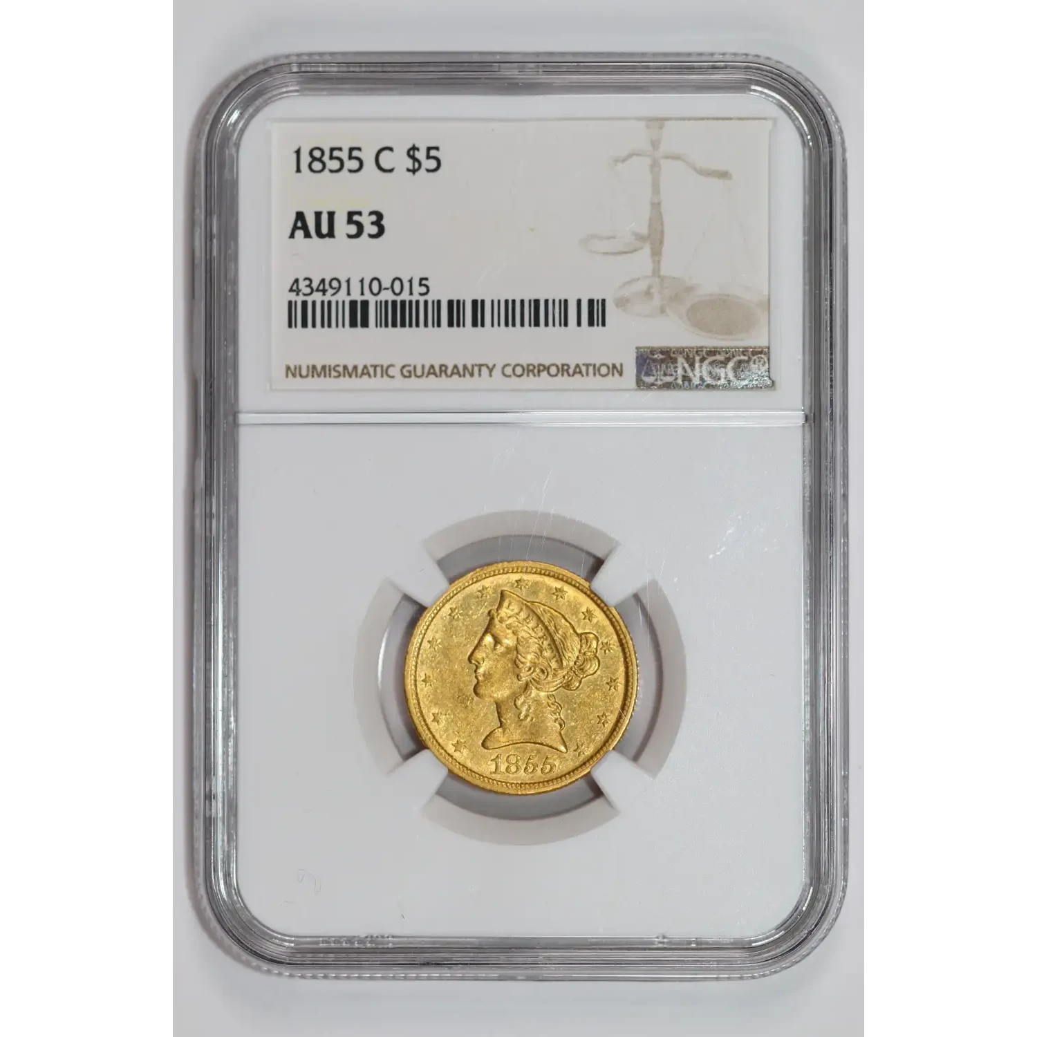 1855-C $5 GOLD LIBERTY HALF EAGLE NGC AU53