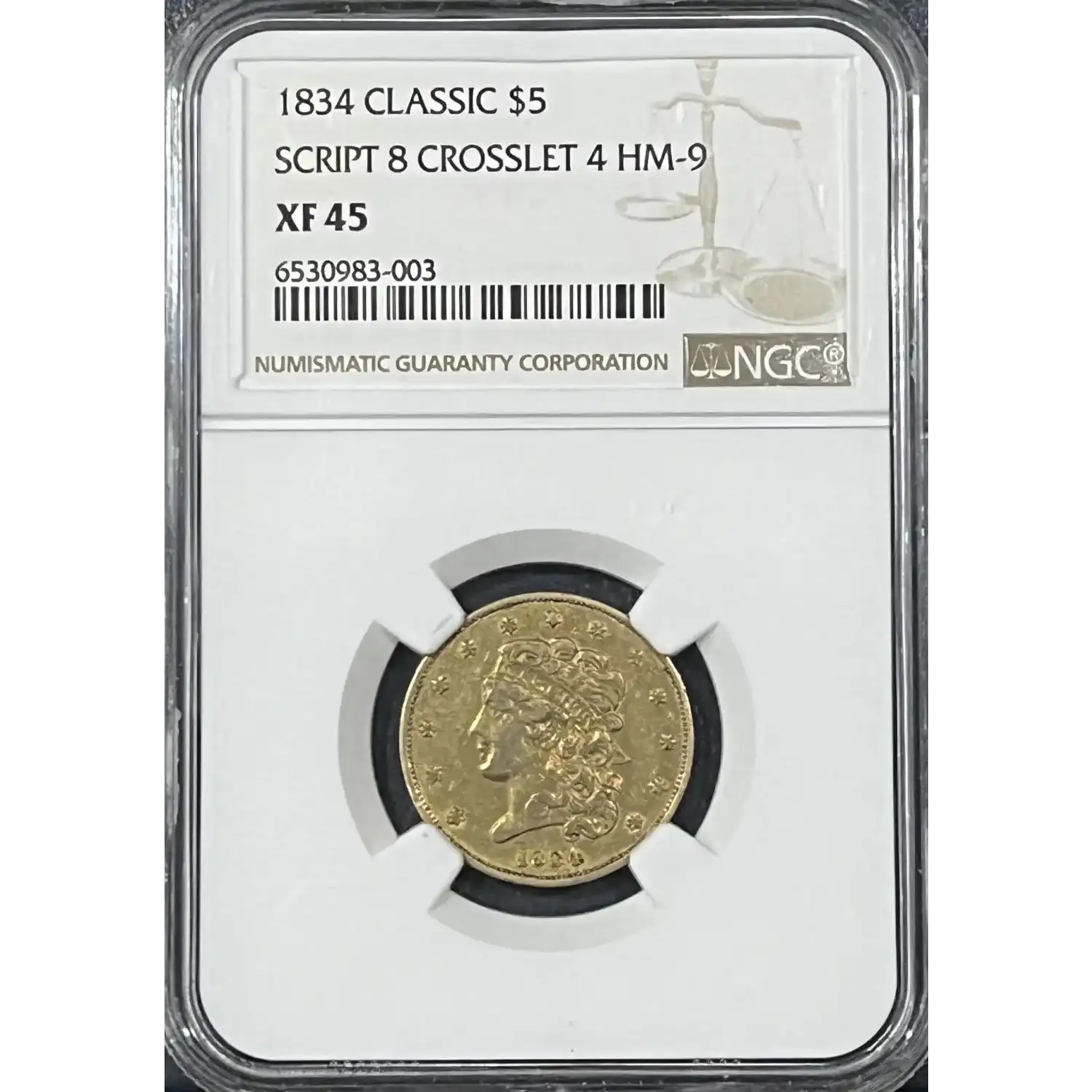 1834 Gold Half Eagles Classic Head NGC XF-45 SCRIPT 8 CROSSLET 4 HM-9