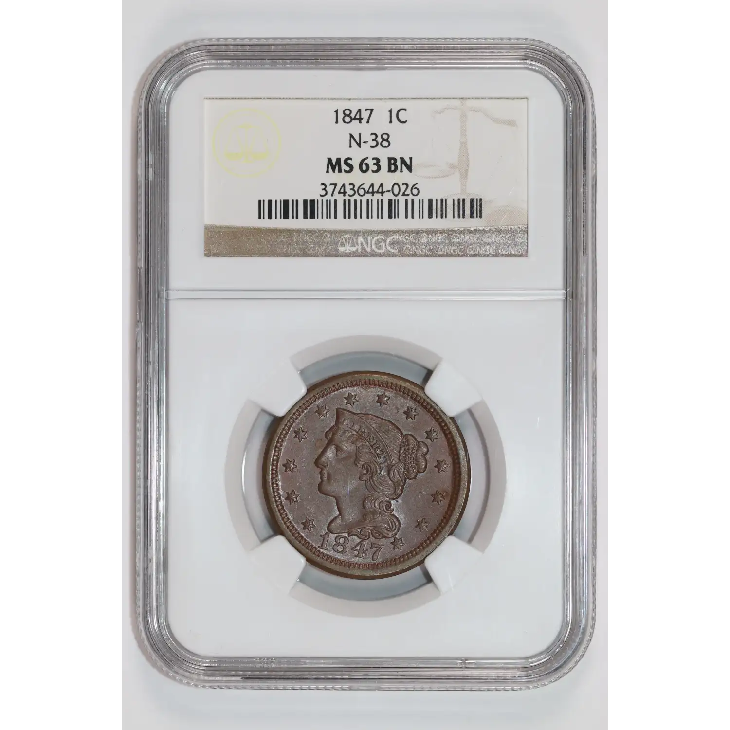 1847 Braided Hair Cent NGC MS-63