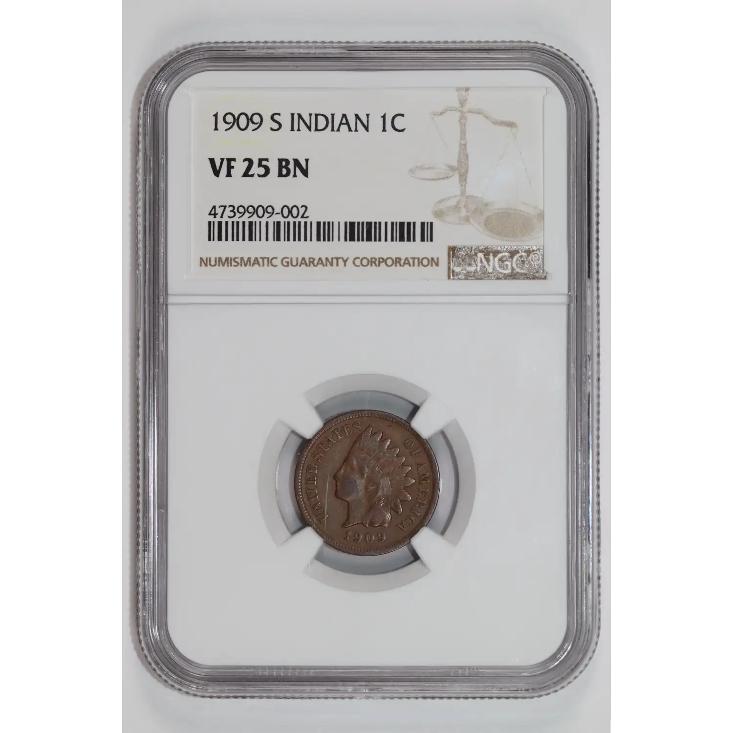 1909-S INDIAN HEAD CENT NGC VF25 BN
