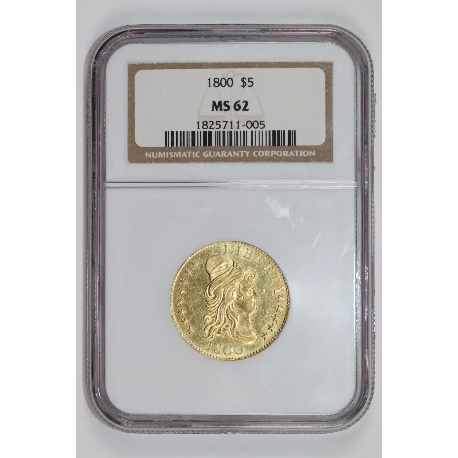 1800 $5 GOLD CAPPED BUST RIGHT EAGLE NGC MS62