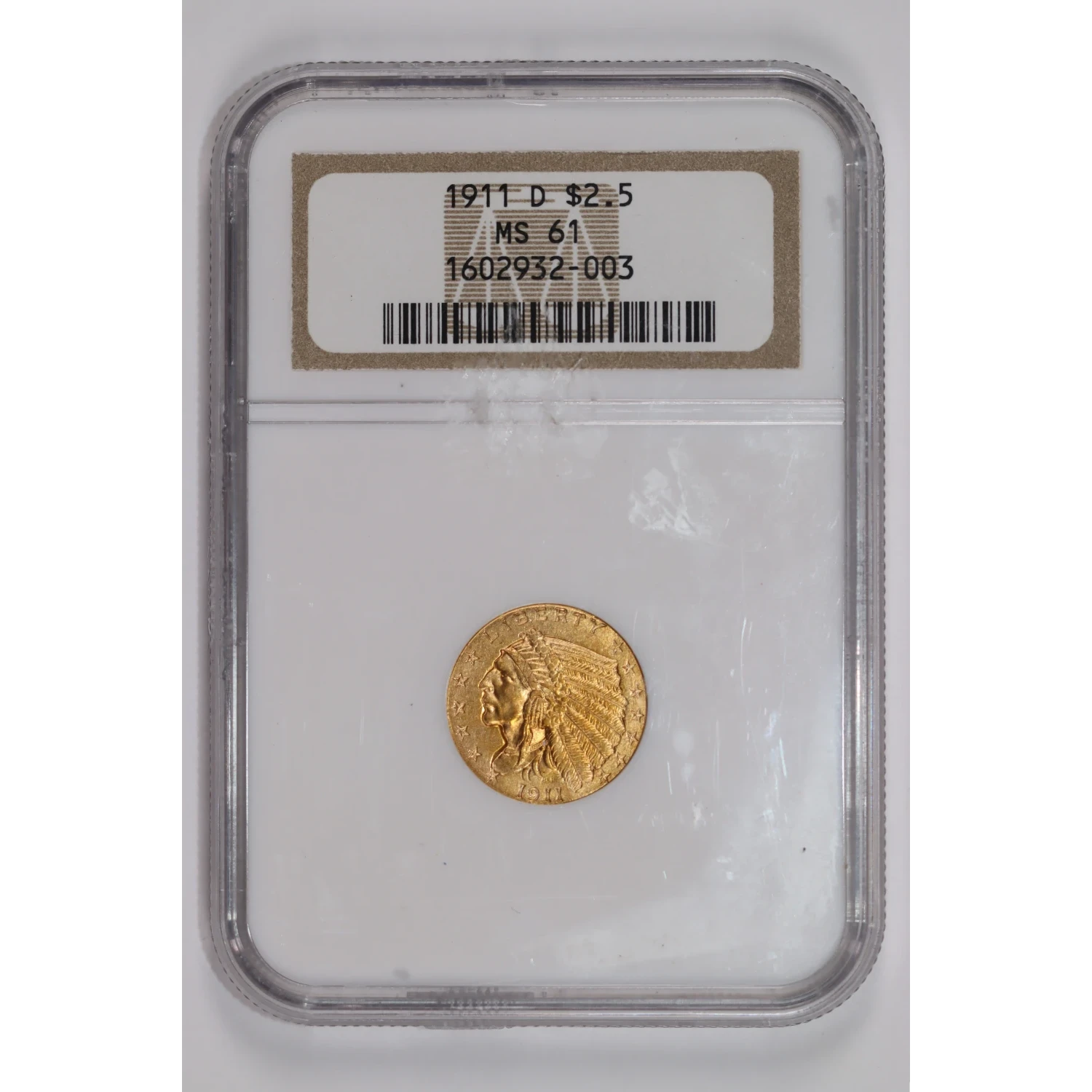 1911-D $2.5 GOLD INDIAN QUARTER EAGLE NGC MS61