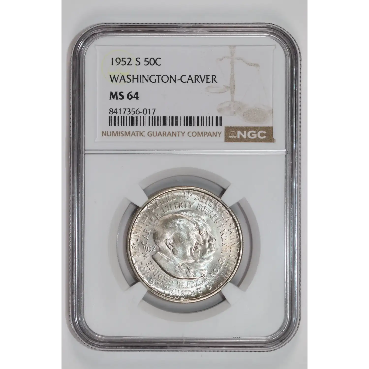 1952-S WASHINGTON CARVER COMMEMORATIVE HALF DOLLAR NGC MS64