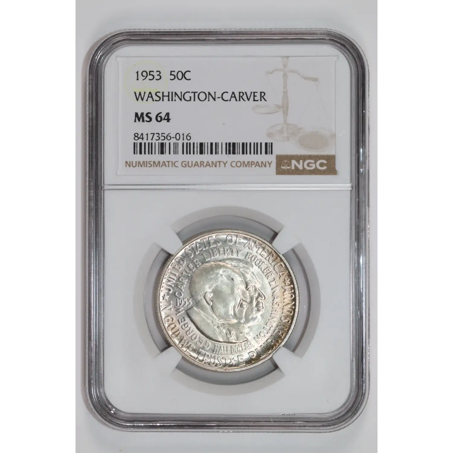 1953 WASHINGTON CARVER COMMEMORATIVE HALF DOLLAR NGC MS64