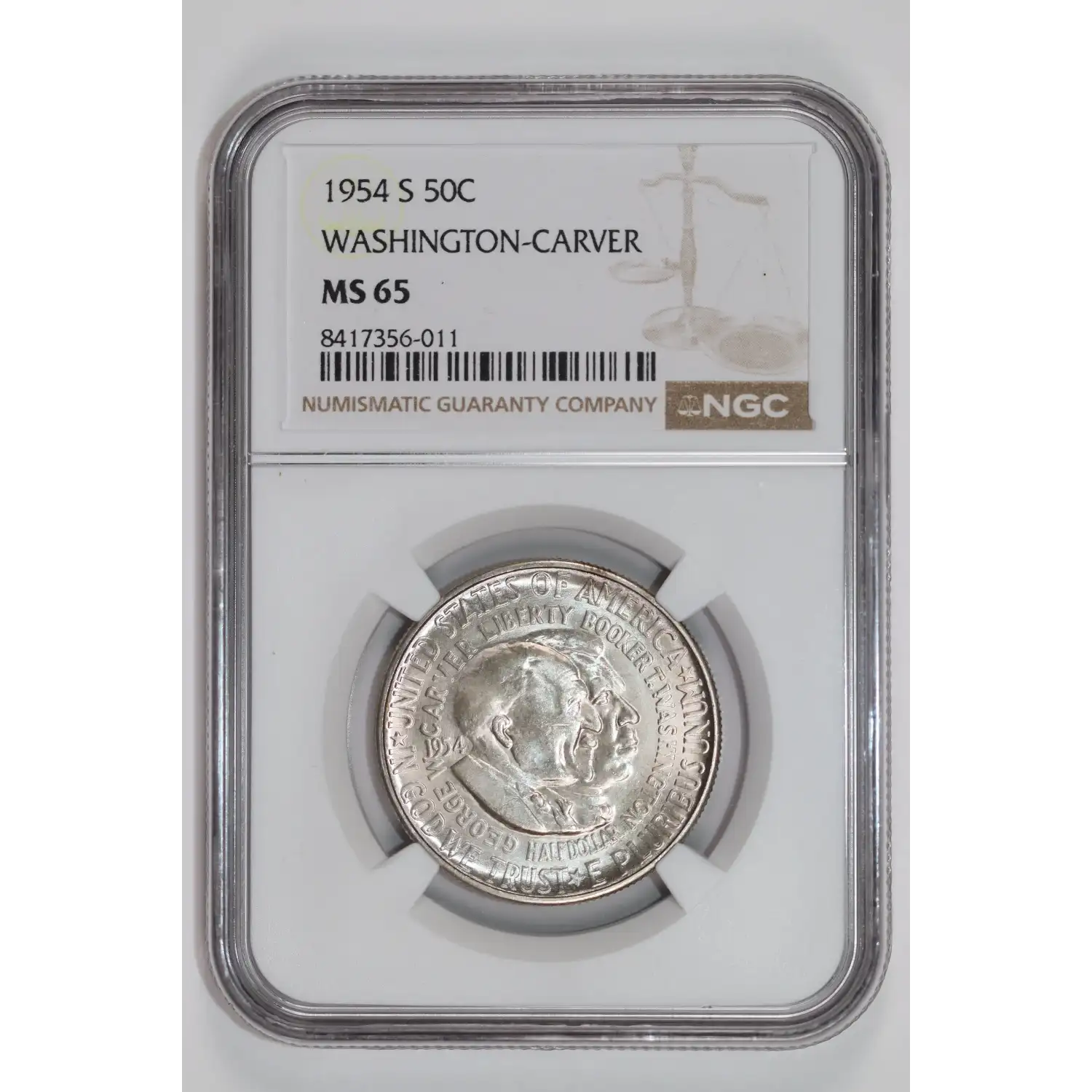 1954-S WASHINGTON CARVER COMMEMORATIVE HALF DOLLAR NGC MS65