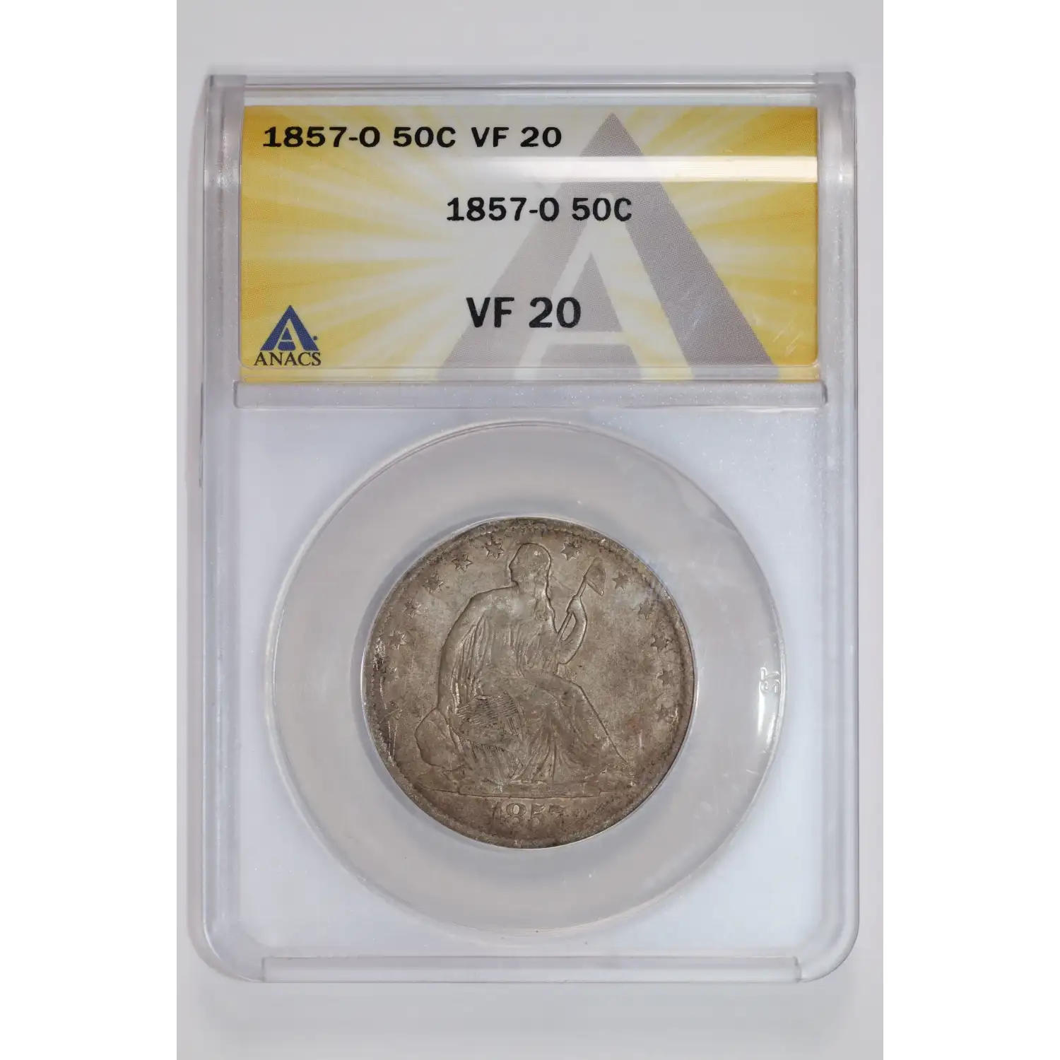 1857-O SEATED LIBERTY HALF DOLLAR ANACS VF20