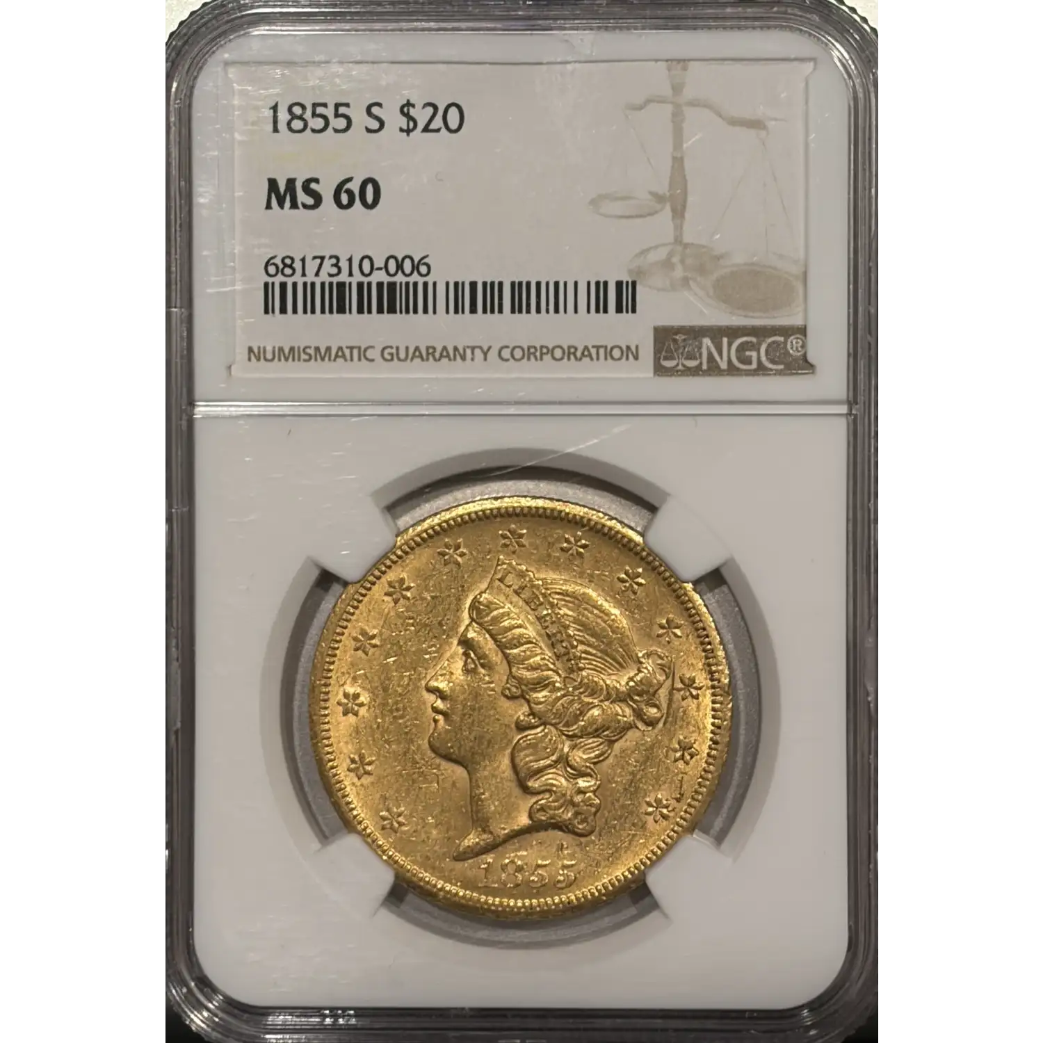 1855-S $20 GOLD LIBERTY DOUBLE EAGLE NGC MS60