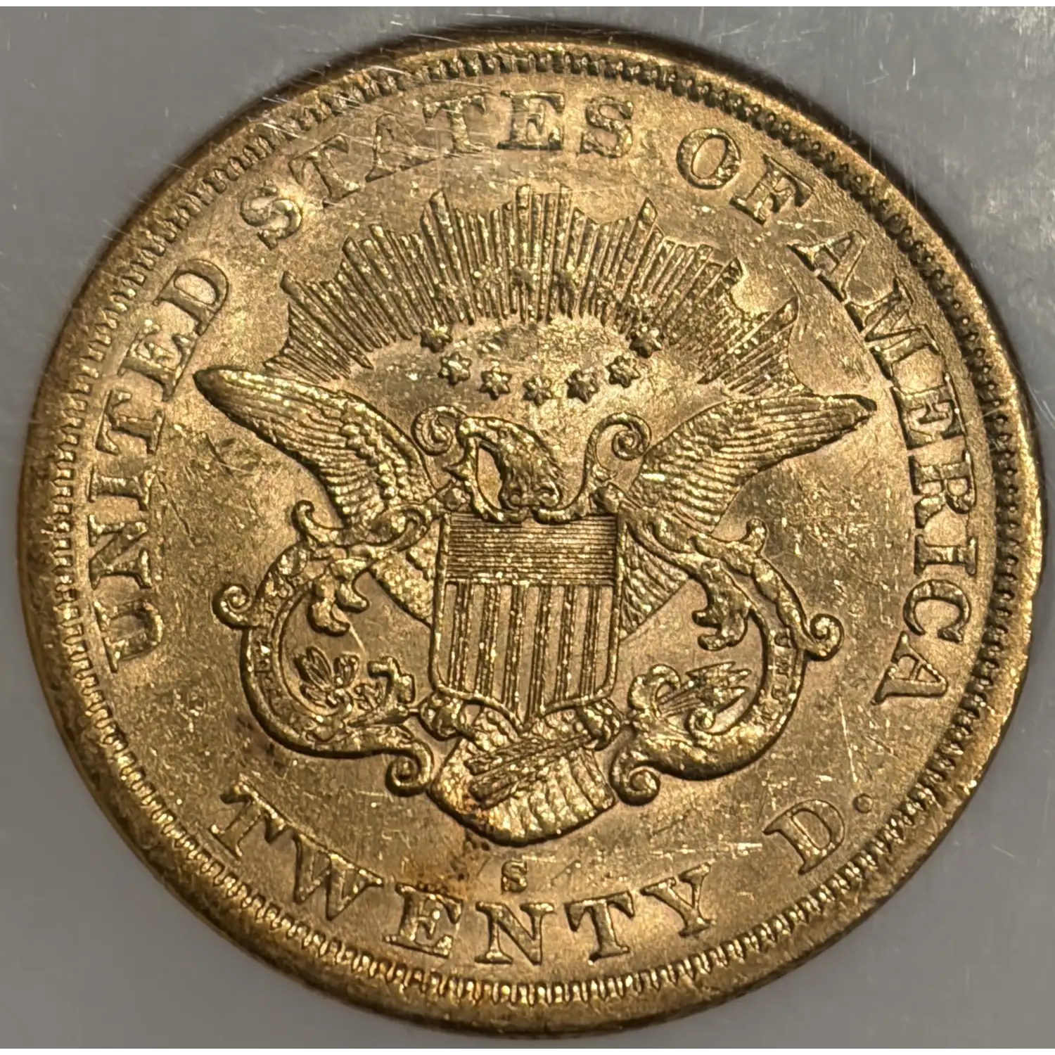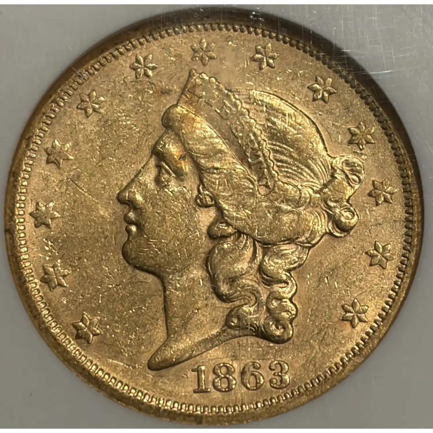 1863-S $20 GOLD LIBERTY DOUBLE EAGLE NGC AU58