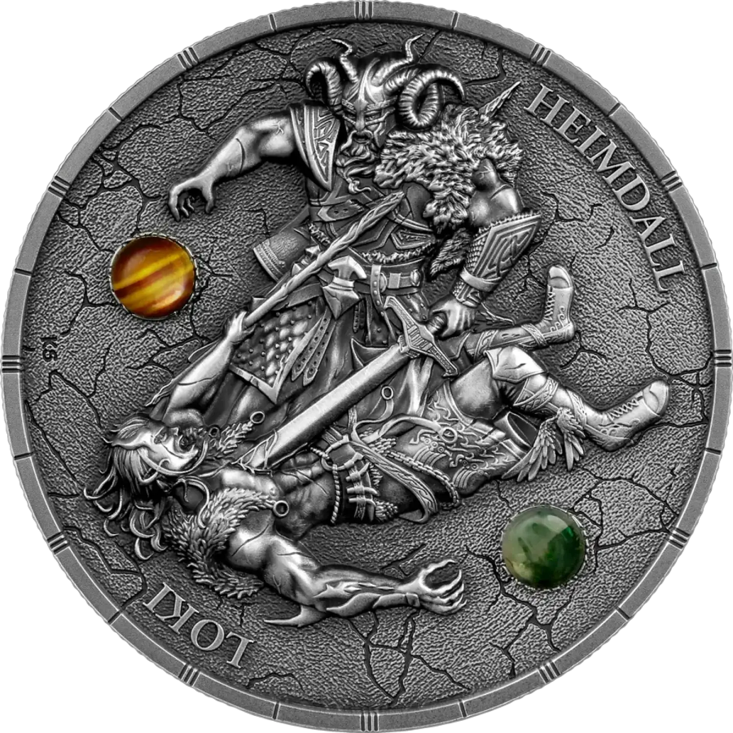 This exquisite coin is a testament to the rich tapestry of Norse mythology, illustrating the intense saga of Ragnarök, the prophesied cataclysmic battle between the gods. Loki, known as the trickster god, is intricately portrayed alongside Heimdall, the ever-vigilant guardian of the Bifrost. The exquisite craftsmanship of this coin showcases the unparalleled detail that ultra high relief minting provides, making it a centerpiece in any collection.