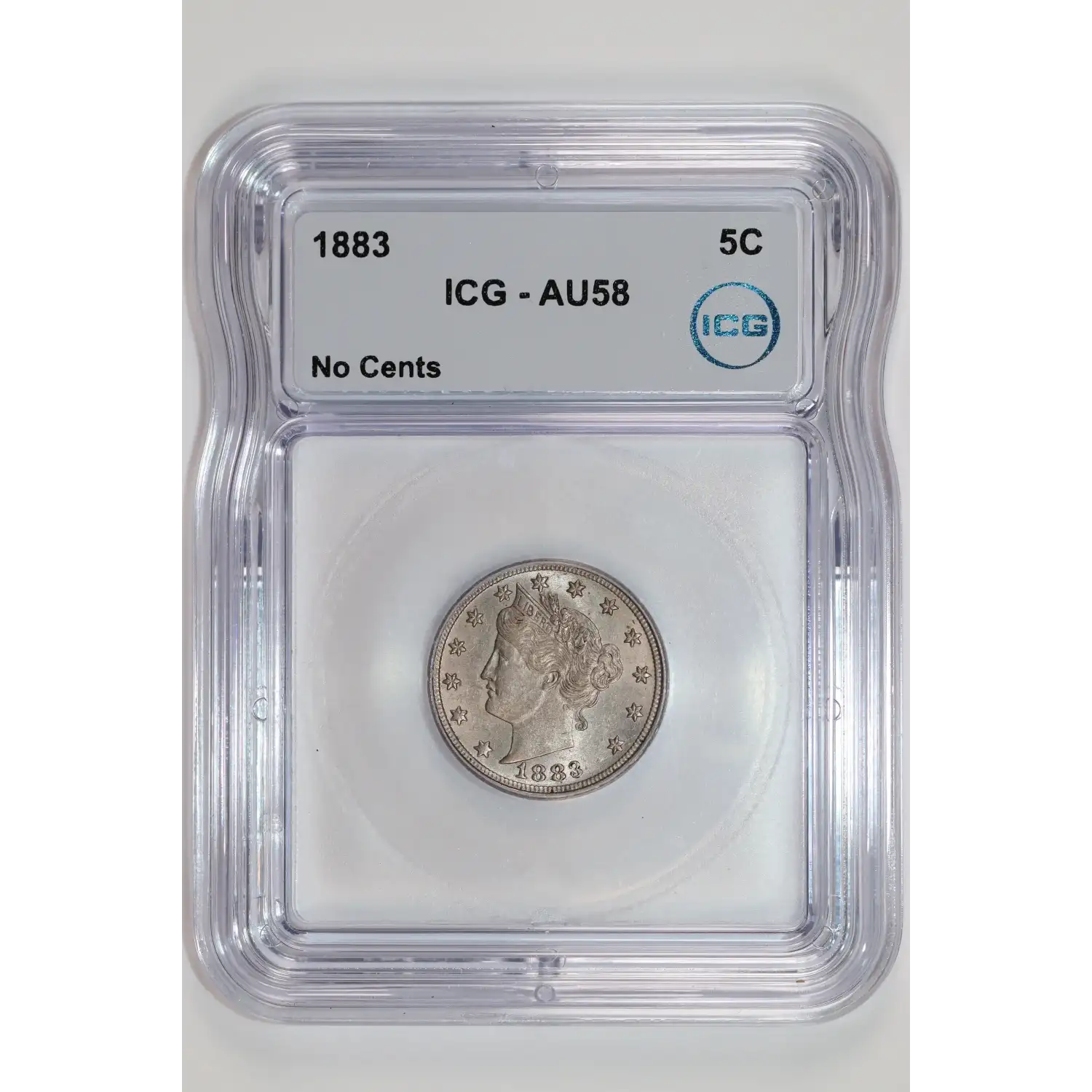 1883 NO CENTS LIBERTY V NICKEL ICG AU58