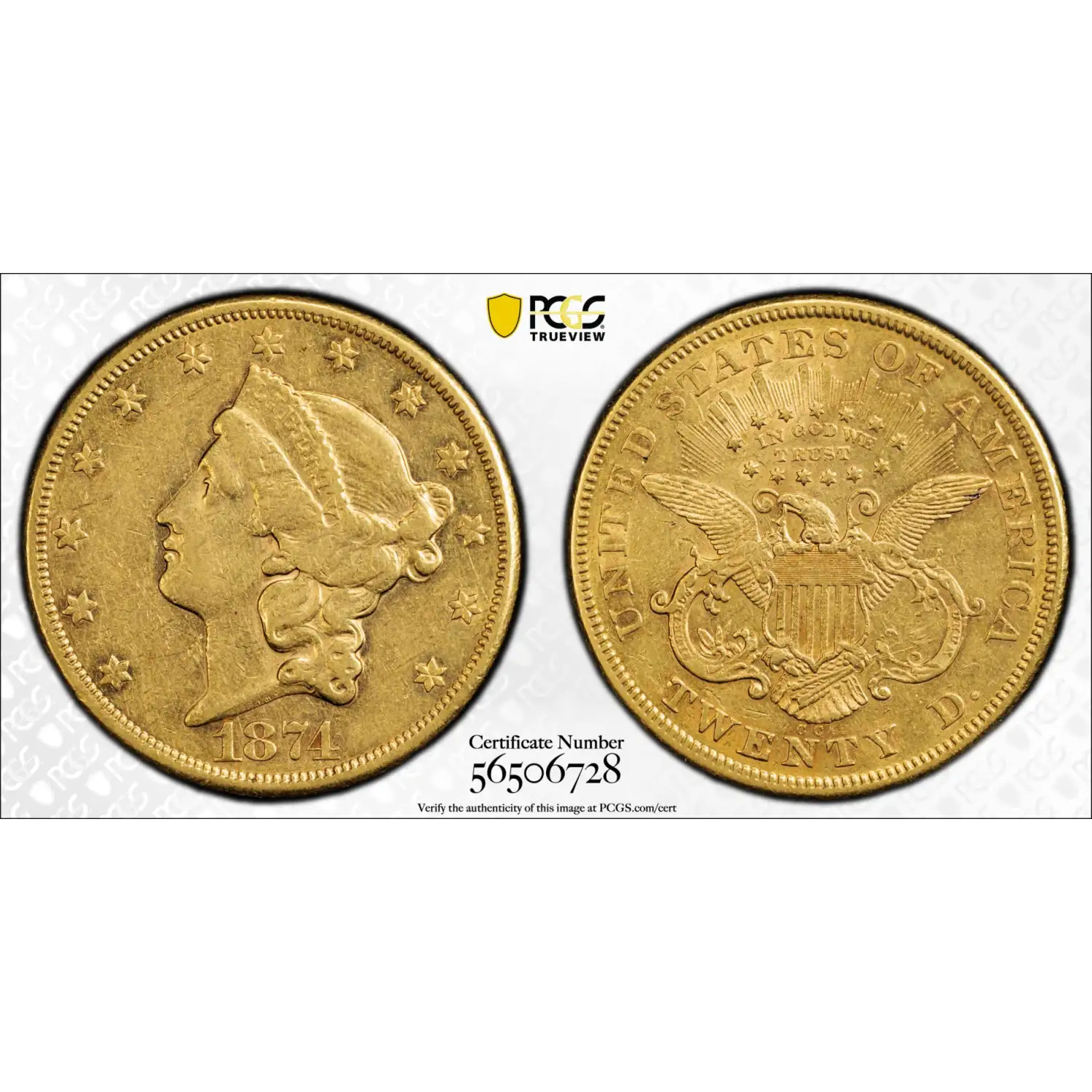 1874-CC $20 GOLD LIBERTY DOUBLE EAGLE PCGS XF45