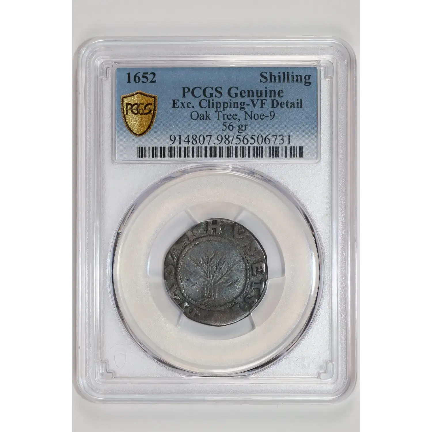 1652 SHILLING OAK TREE 56 GRAINS NOE-9 PCGS VF DETAILS