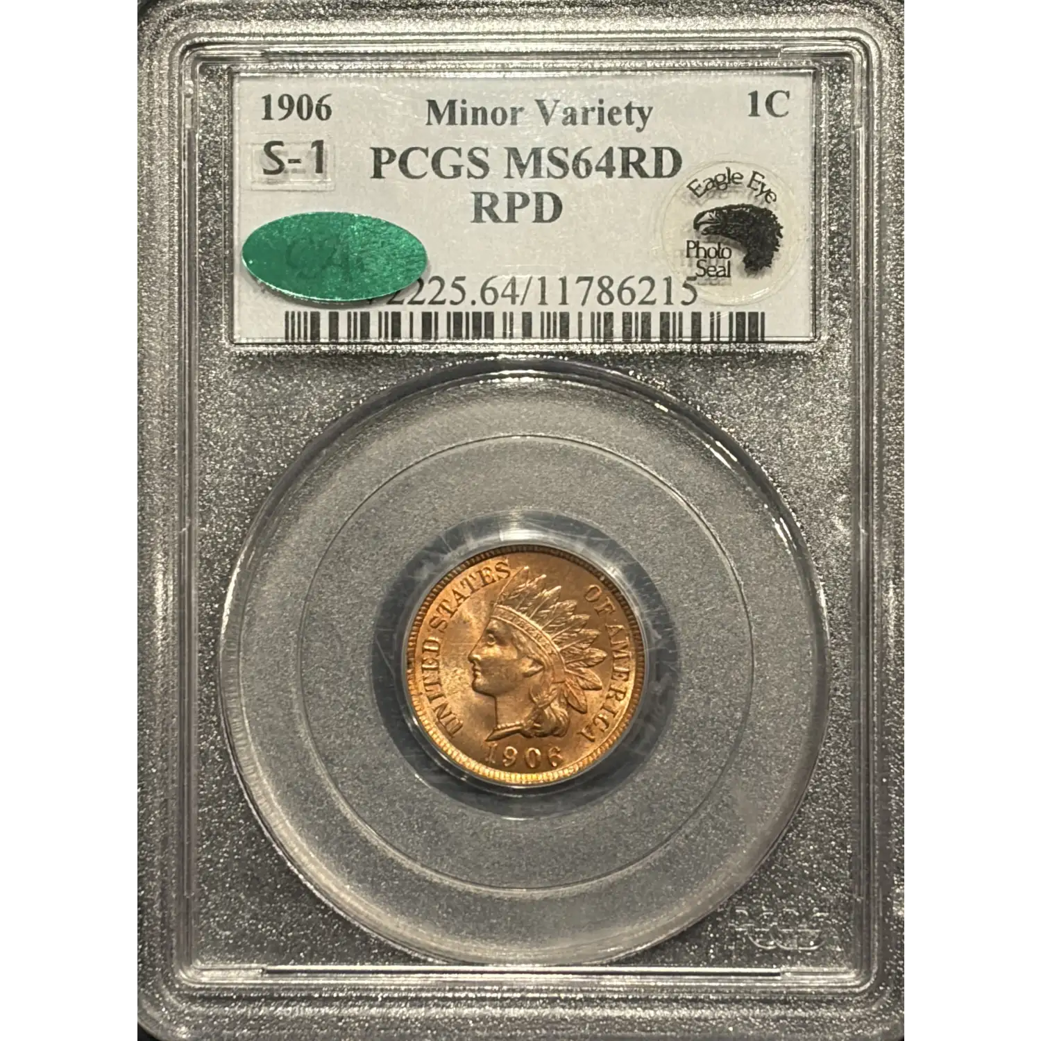 1906 INDIAN CENT PCGS MS64RD CAC RPD