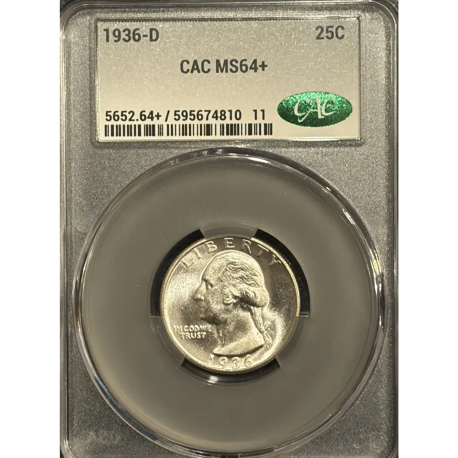 1936-D Quarter Dollars Silver Coinage CACG MS 64+