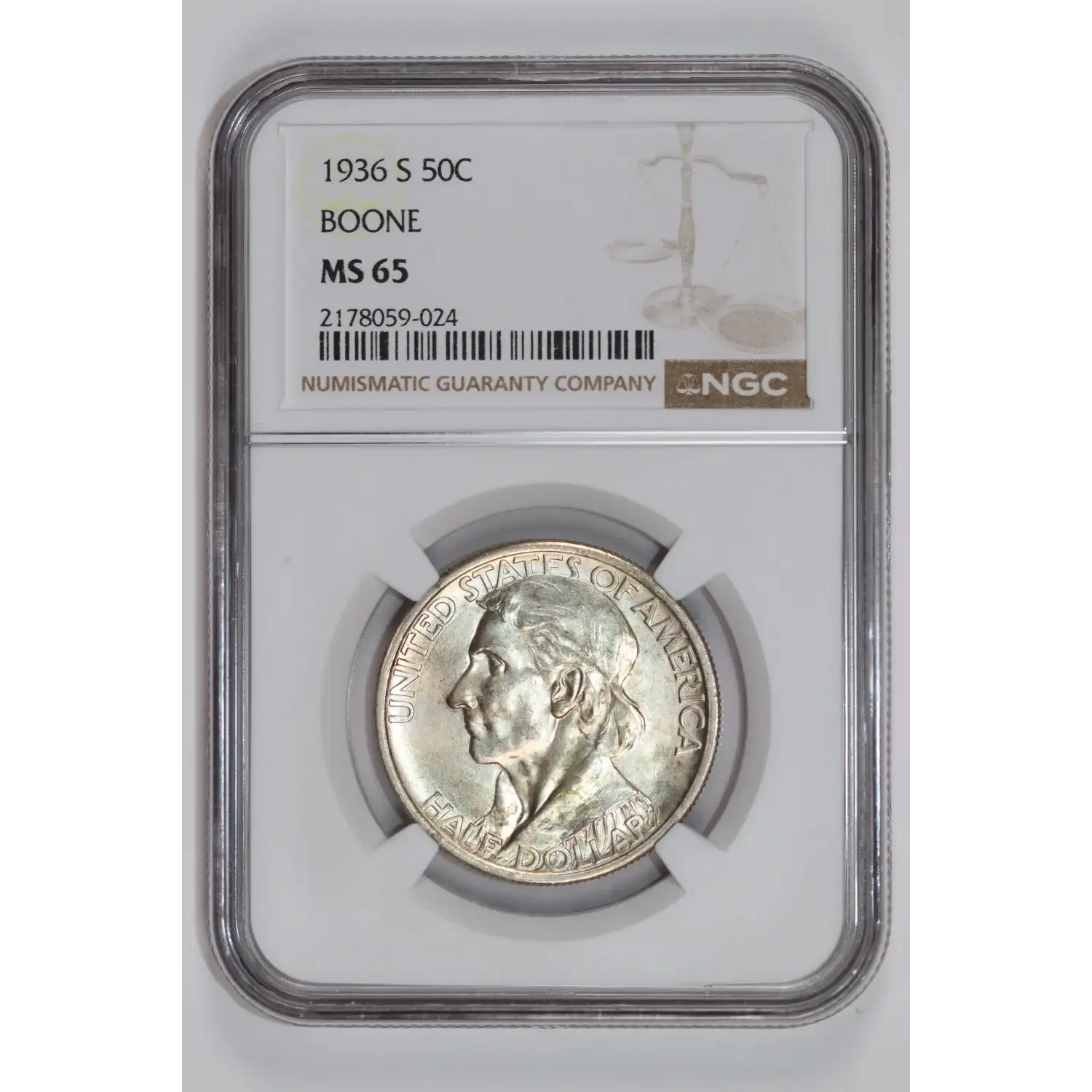 1936-S BOONE COMMEMORATIVE HALF DOLLAR NGC MS65