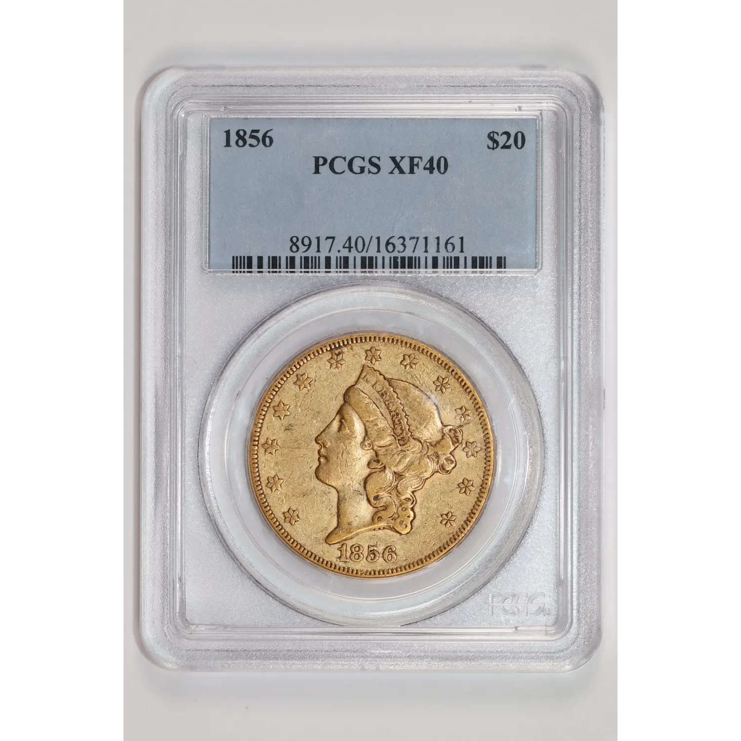 1856 $20 GOLD LIBERTY DOUBLE EAGLE PCGS XF40