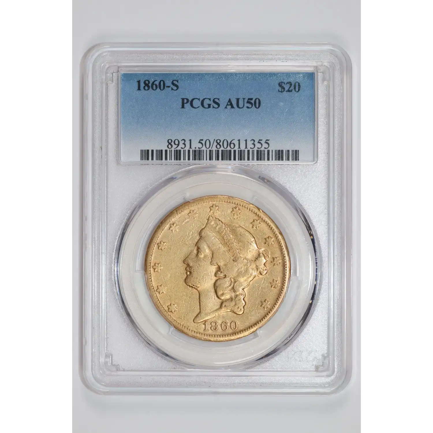 1860-S $20 GOLD LIBERTY DOUBLE EAGLE PCGS AU50