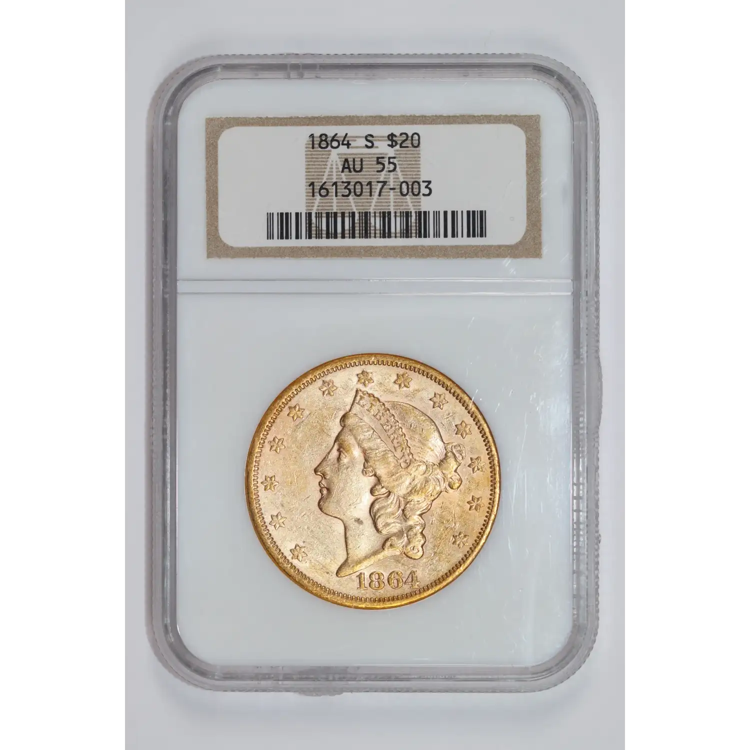 1864-S $20 GOLD LIBERTY DOUBLE EAGLE NGC AU55