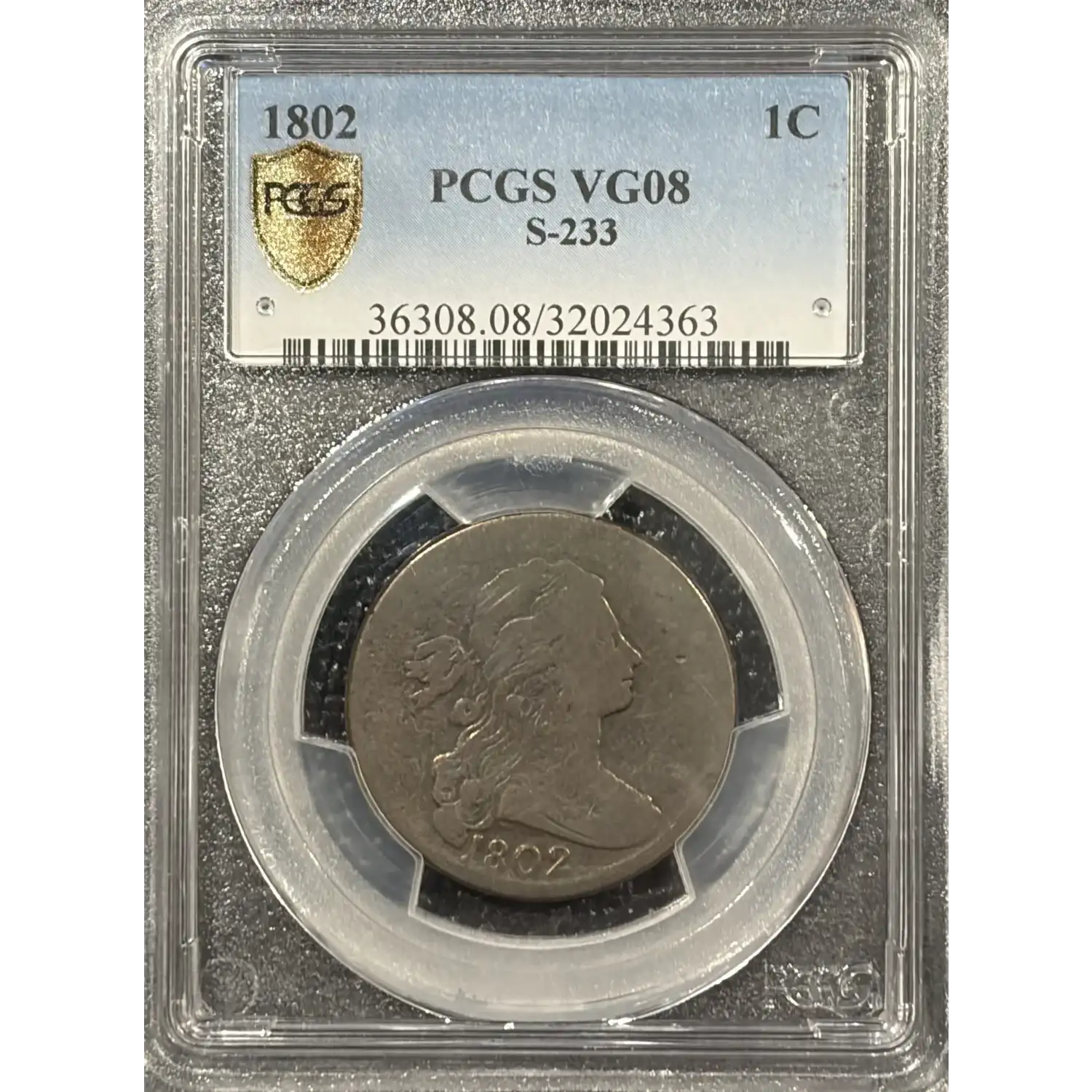 1802 Large Cents Draped Bust PCGS VG-8 BN Sheldon 233