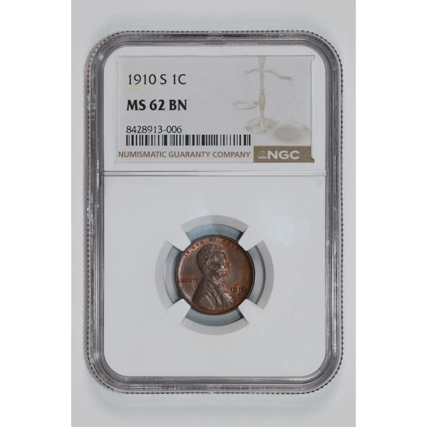 1910-S LINCOLN WHEAT CENT NGC MS62 BN - LOOKS RB!