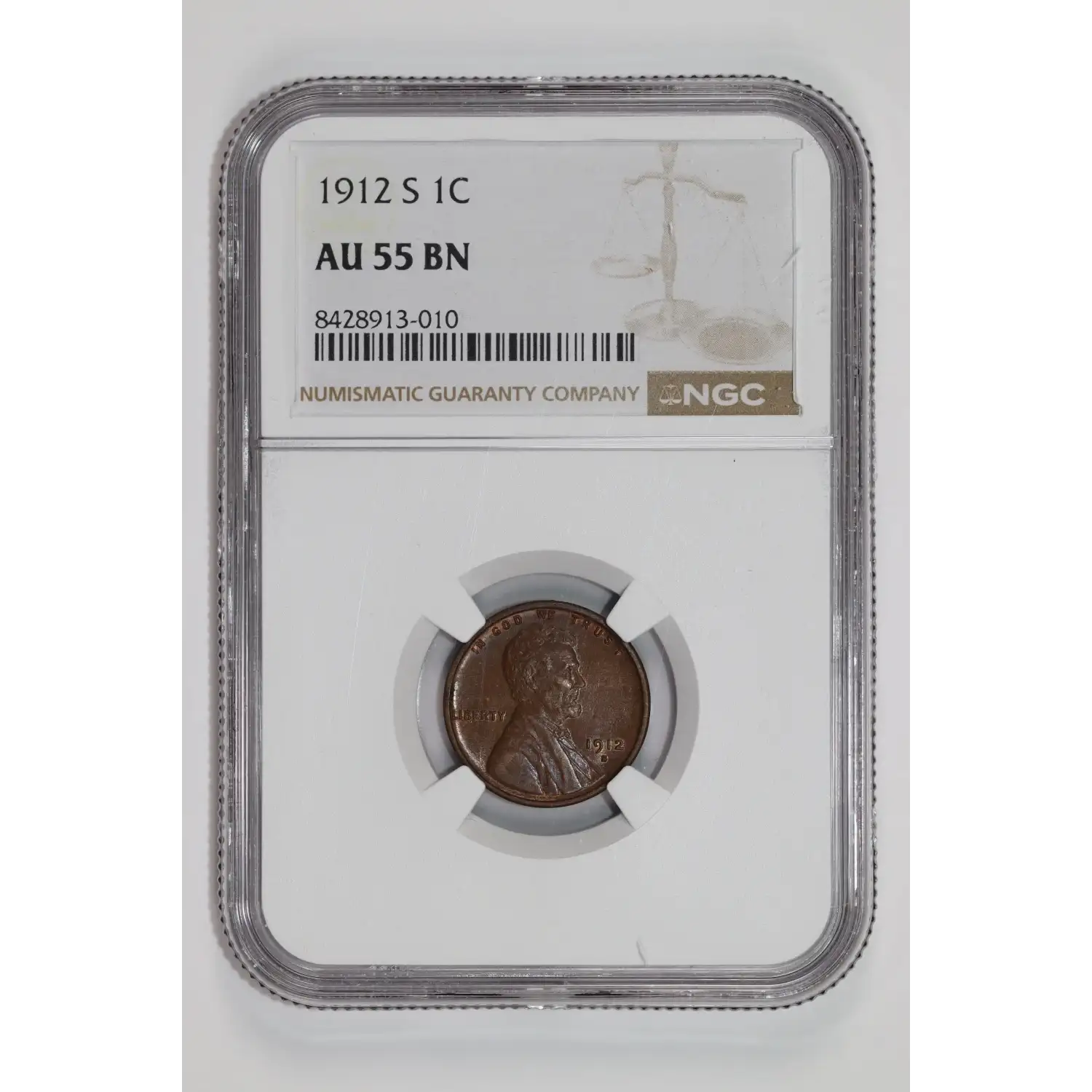 1912-S LINCOLN WHEAT CENT NGC AU55 BN