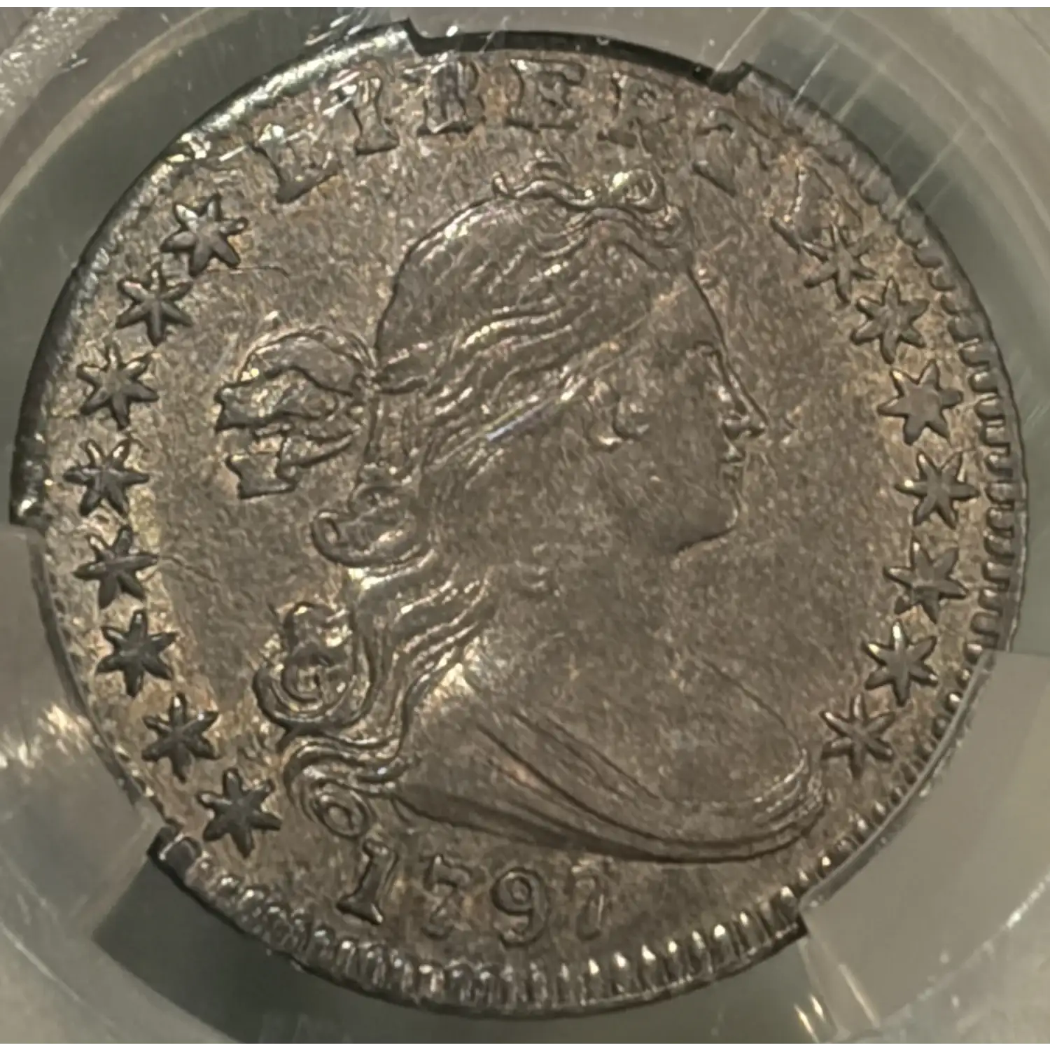 1797 16 STARS DRAPED BUST HALF DIME CACG AU53