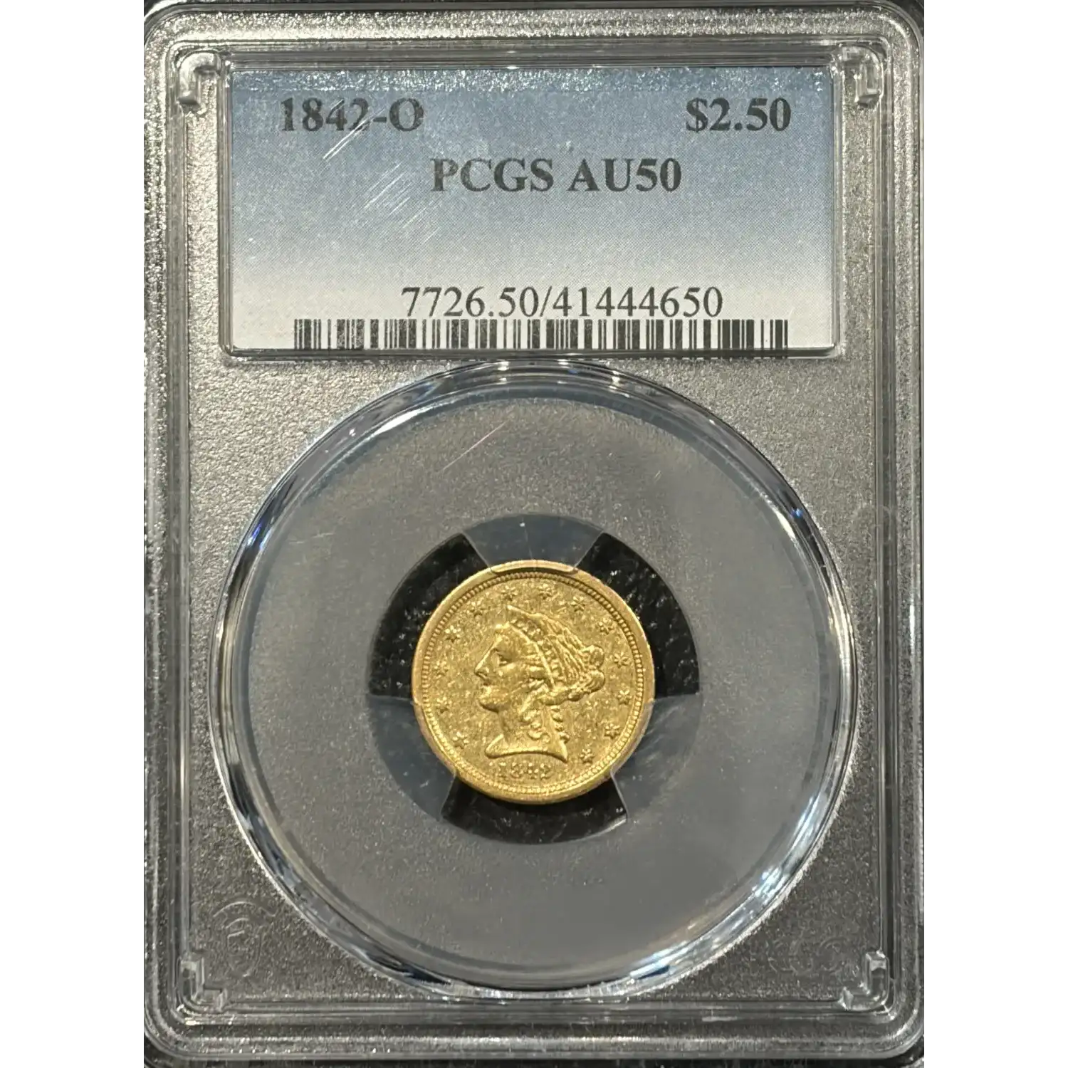 1842-O $2.5 GOLD LIBERTY QUARTER EAGLE PCGS AU50
