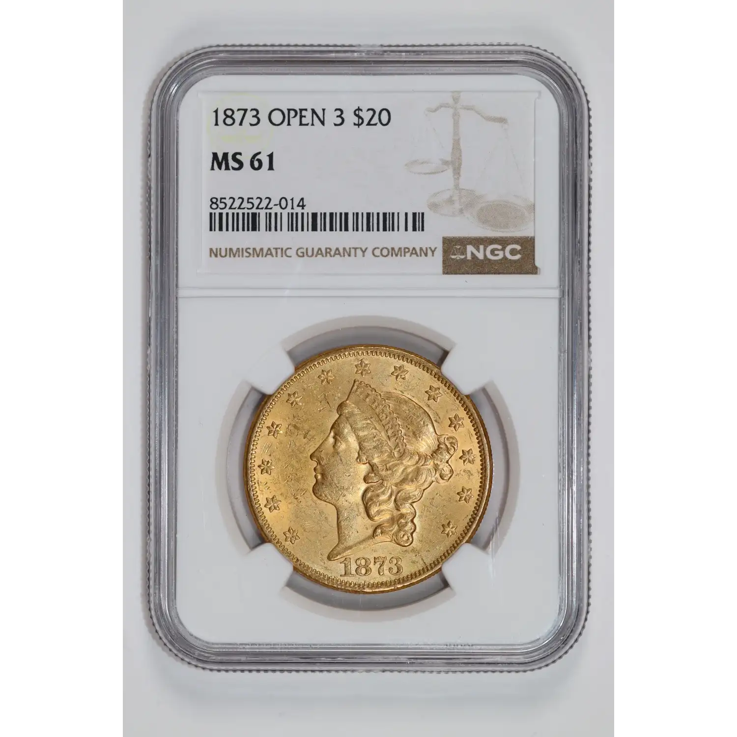 1873 OPEN 3 $20 GOLD LIBERTY DOUBLE EAGLE NGC MS61