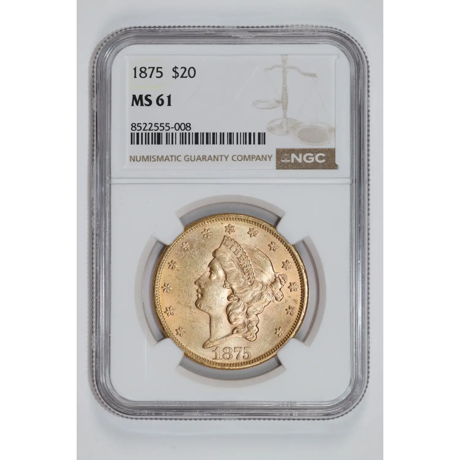 1875 $20 GOLD LIBERTY DOUBLE EAGLE NGC MS61