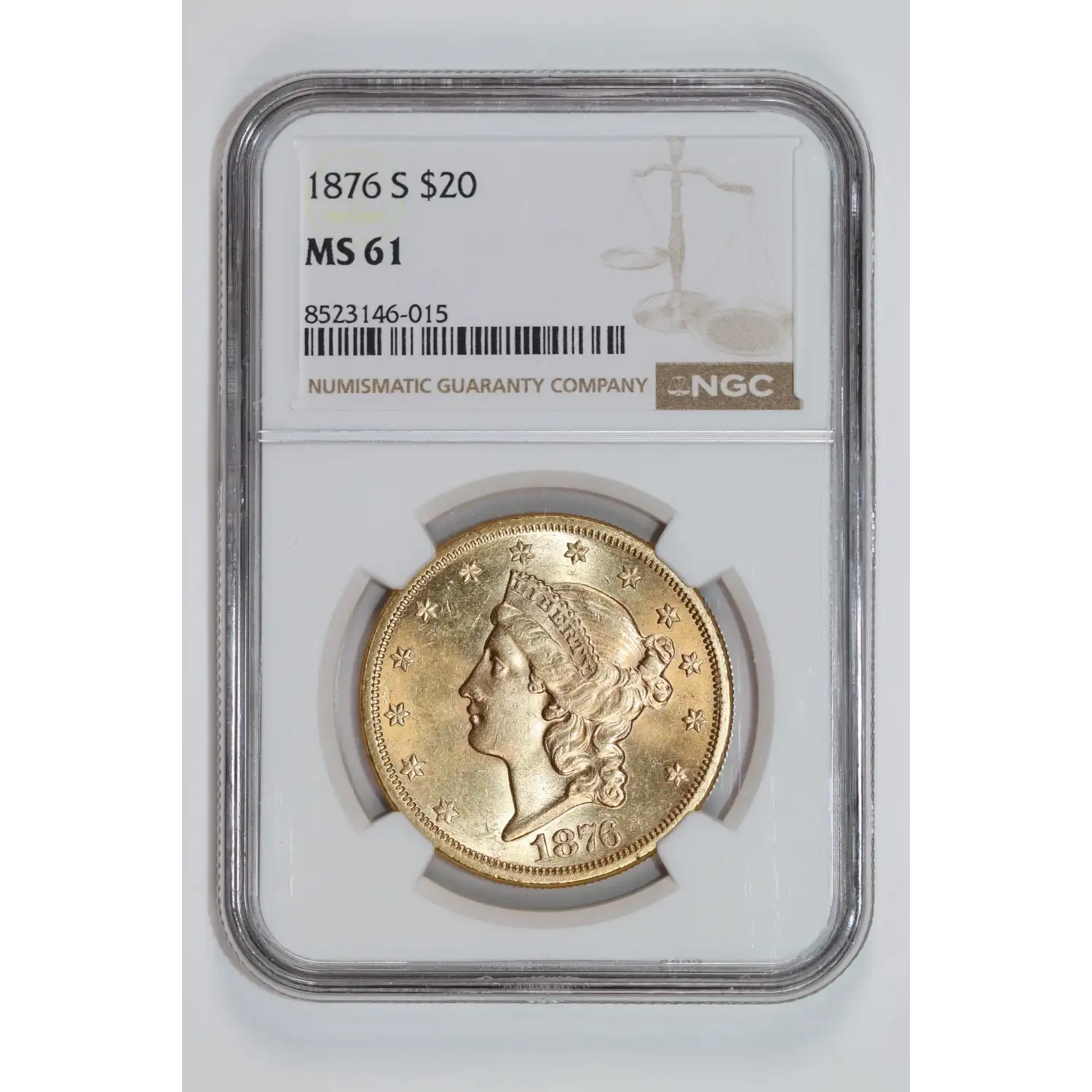 1876-S $20 GOLD LIBERTY DOUBLE EAGLE NGC MS61