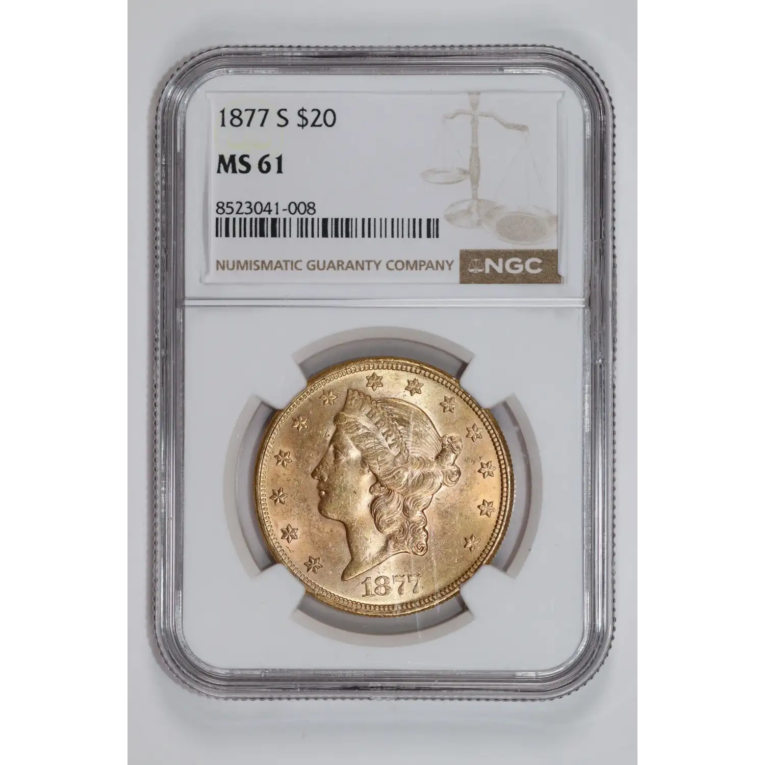 1877-S $20 GOLD LIBERTY DOUBLE EAGLE NGC MS61
