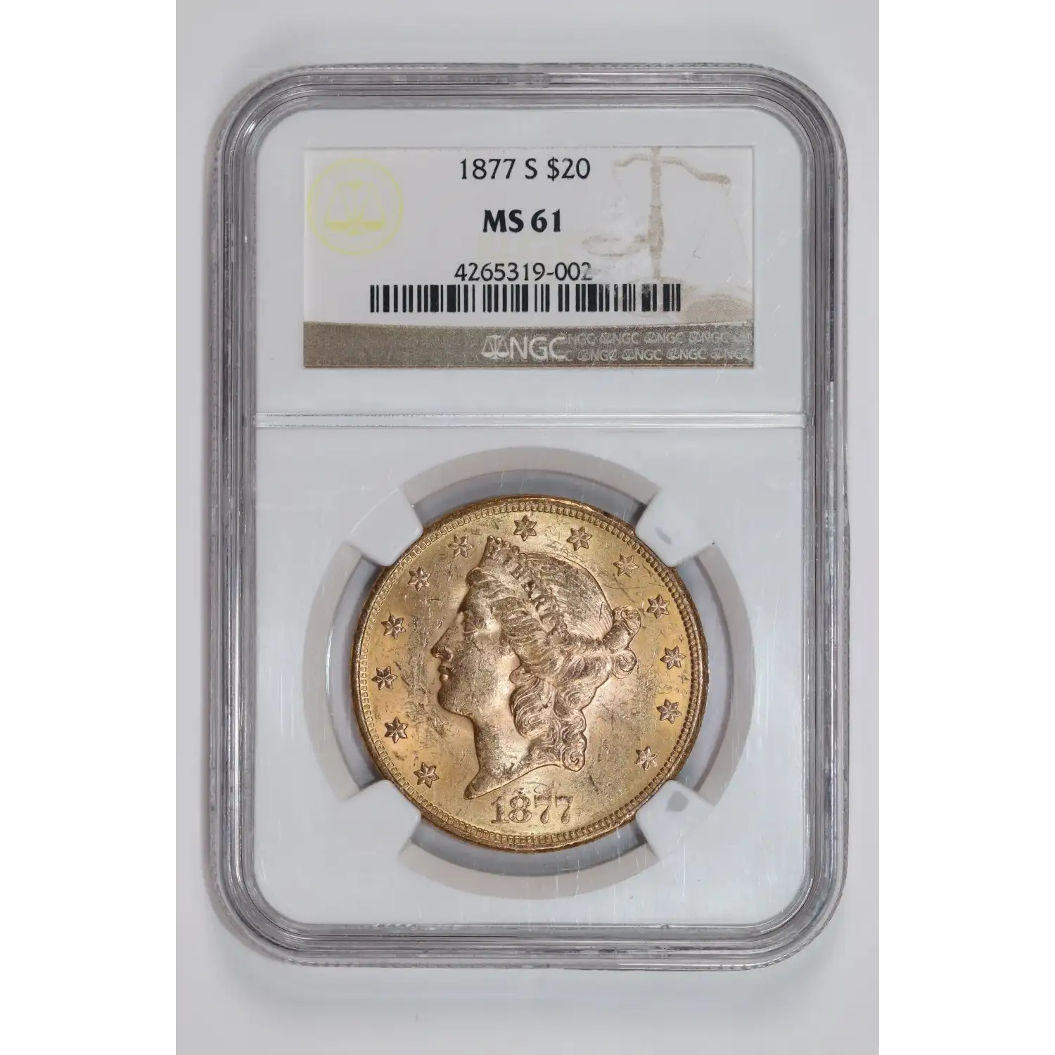 1877-S $20 GOLD LIBERTY DOUBLE EAGLE NGC MS61