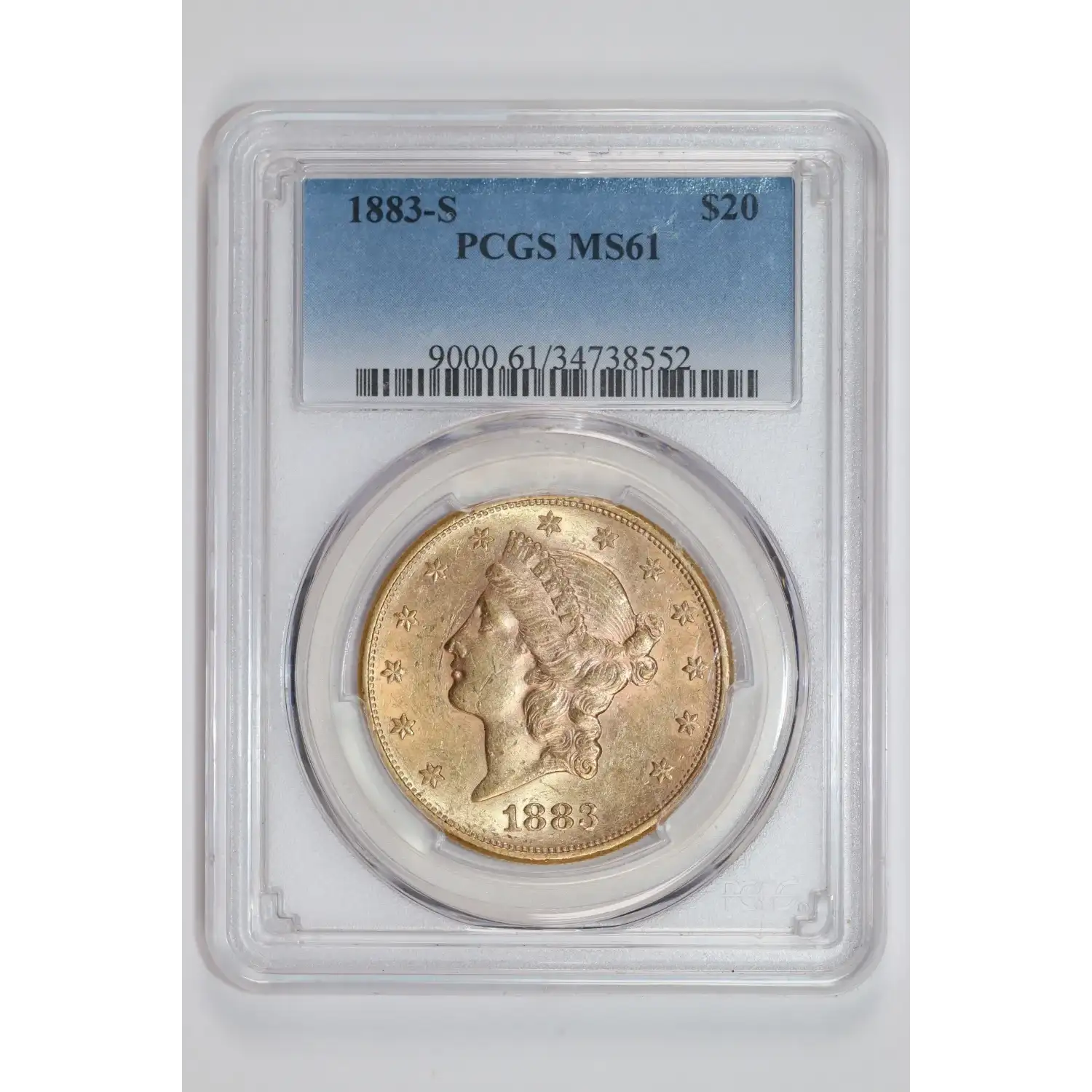 1883-S $20 GOLD LIBERTY DOUBLE EAGLE PCGS MS61