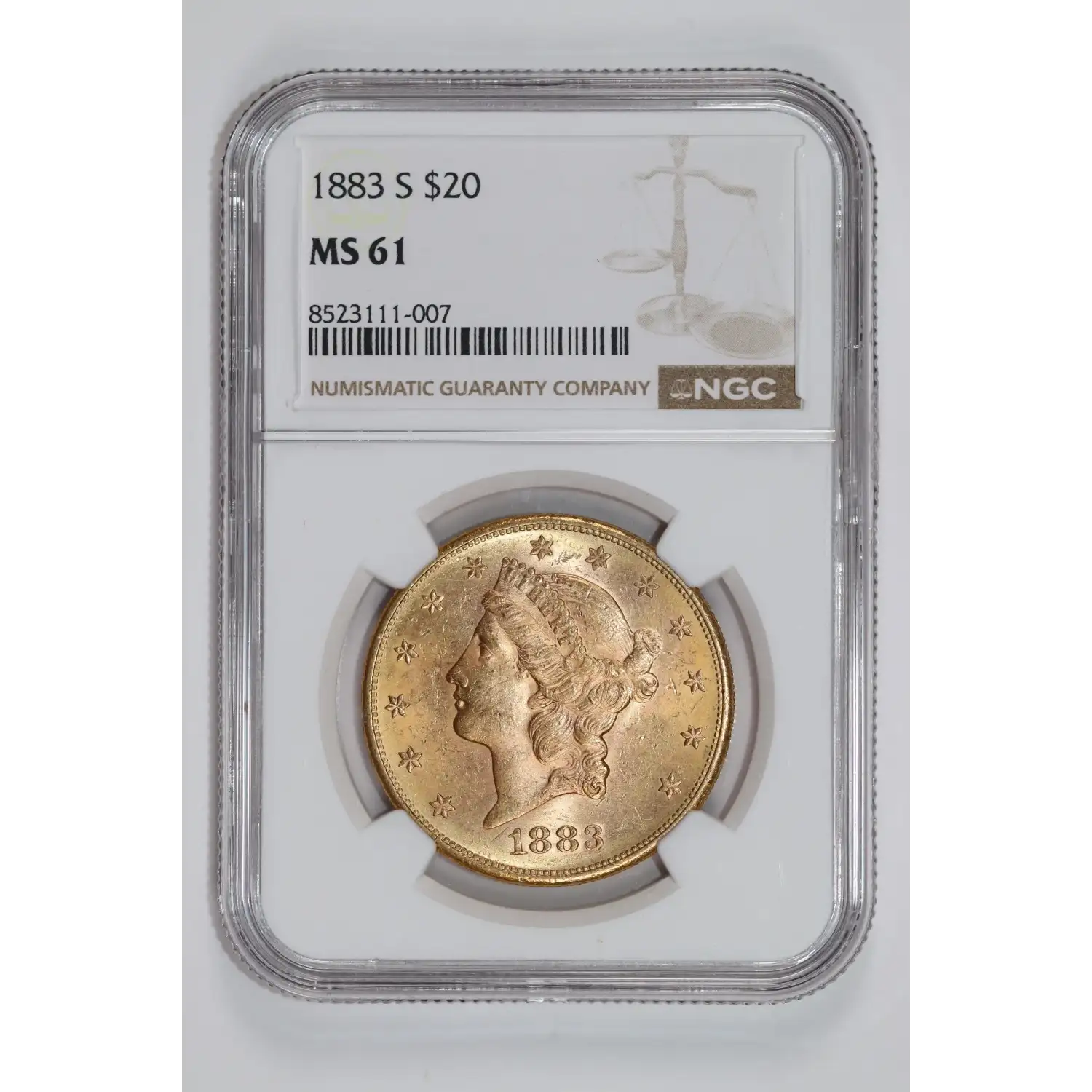 1883-S $20 GOLD LIBERTY DOUBLE EAGLE NGC MS61