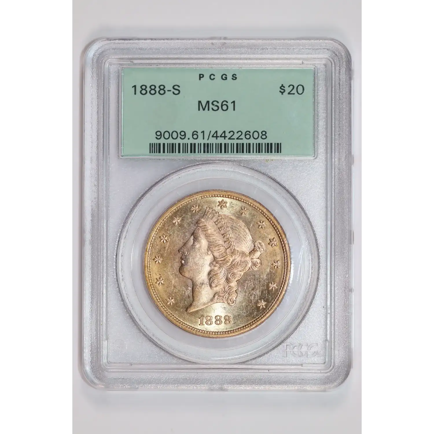 1888-S $20 GOLD LIBERTY DOUBLE EAGLE PCGS MS61 OGH