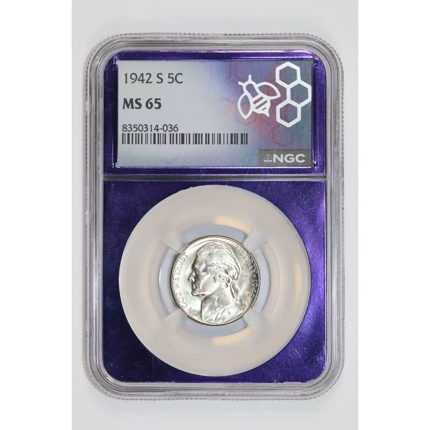 1942-S SILVER JEFFERSON WAR NICKEL NGC MS65 TRADER BEA LABEL