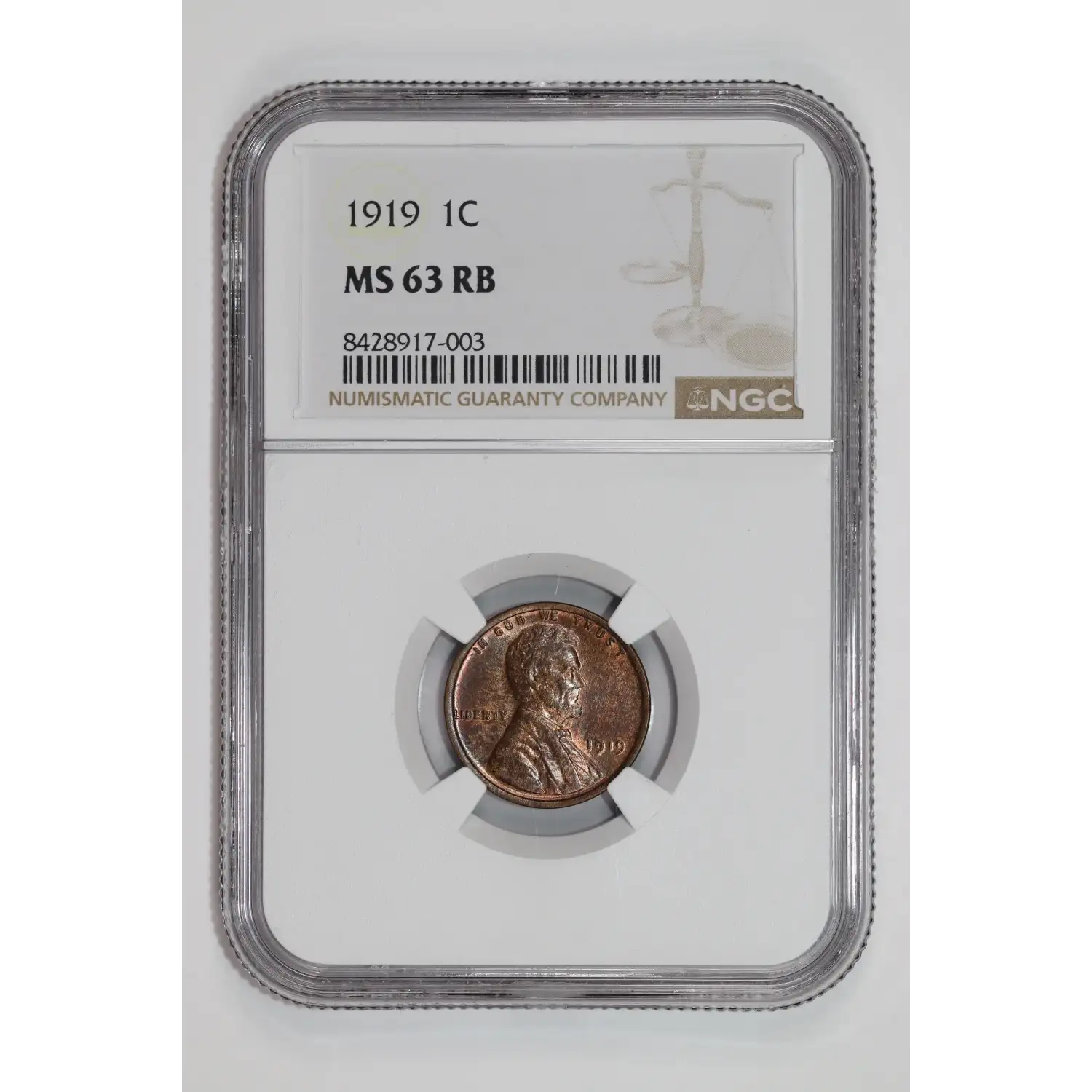 1919 LINCOLN WHEAT CENT NGC MS63 RB