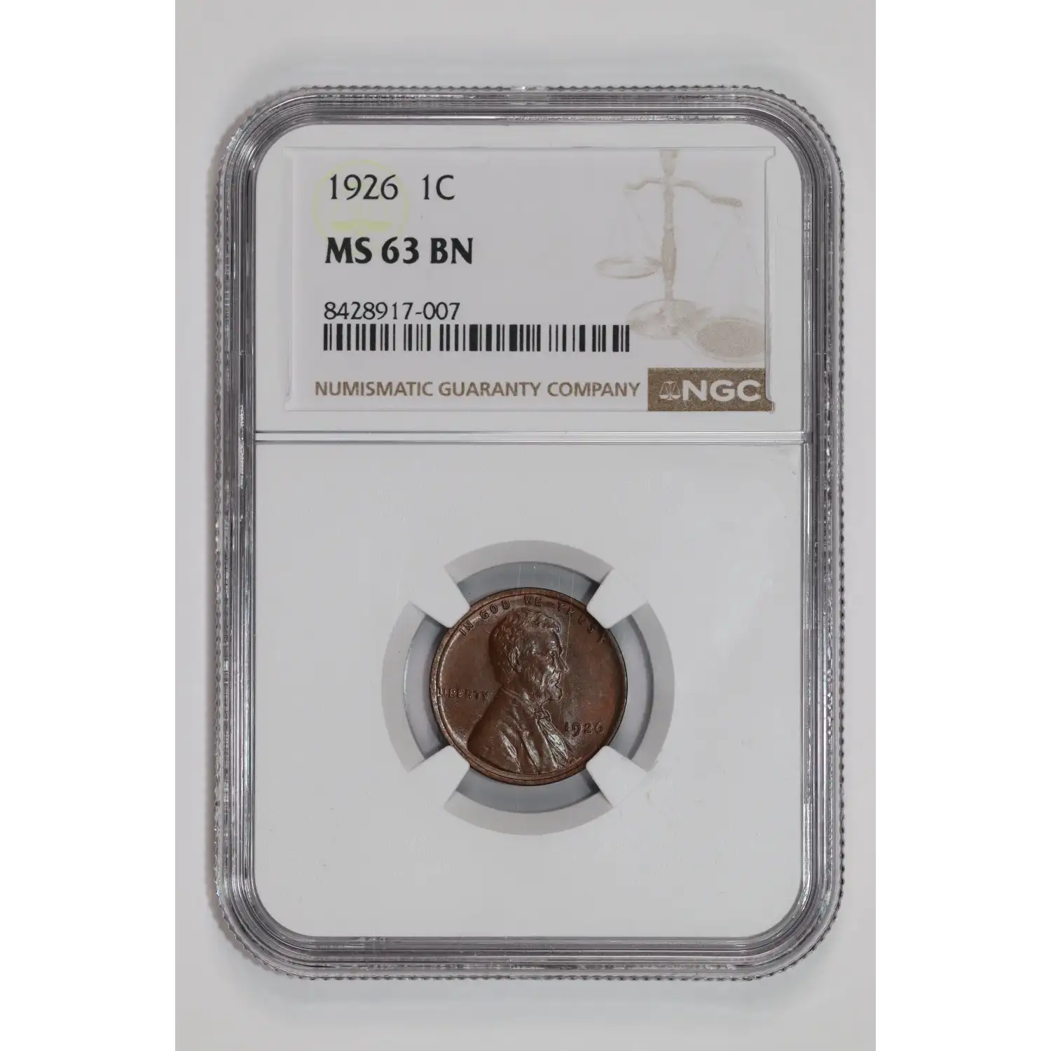 1926 LINCOLN WHEAT CENT NGC MS63 BN