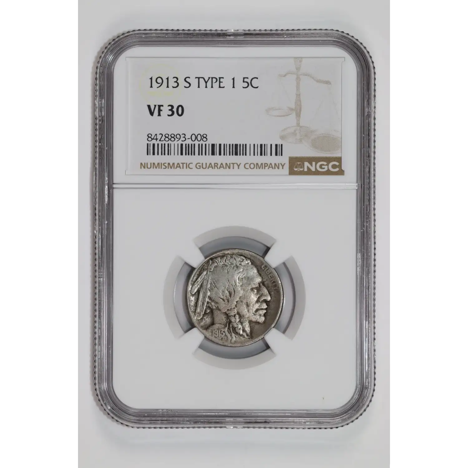 1913-S Nickel Indian Head or Buffalo NGC VF-30 S