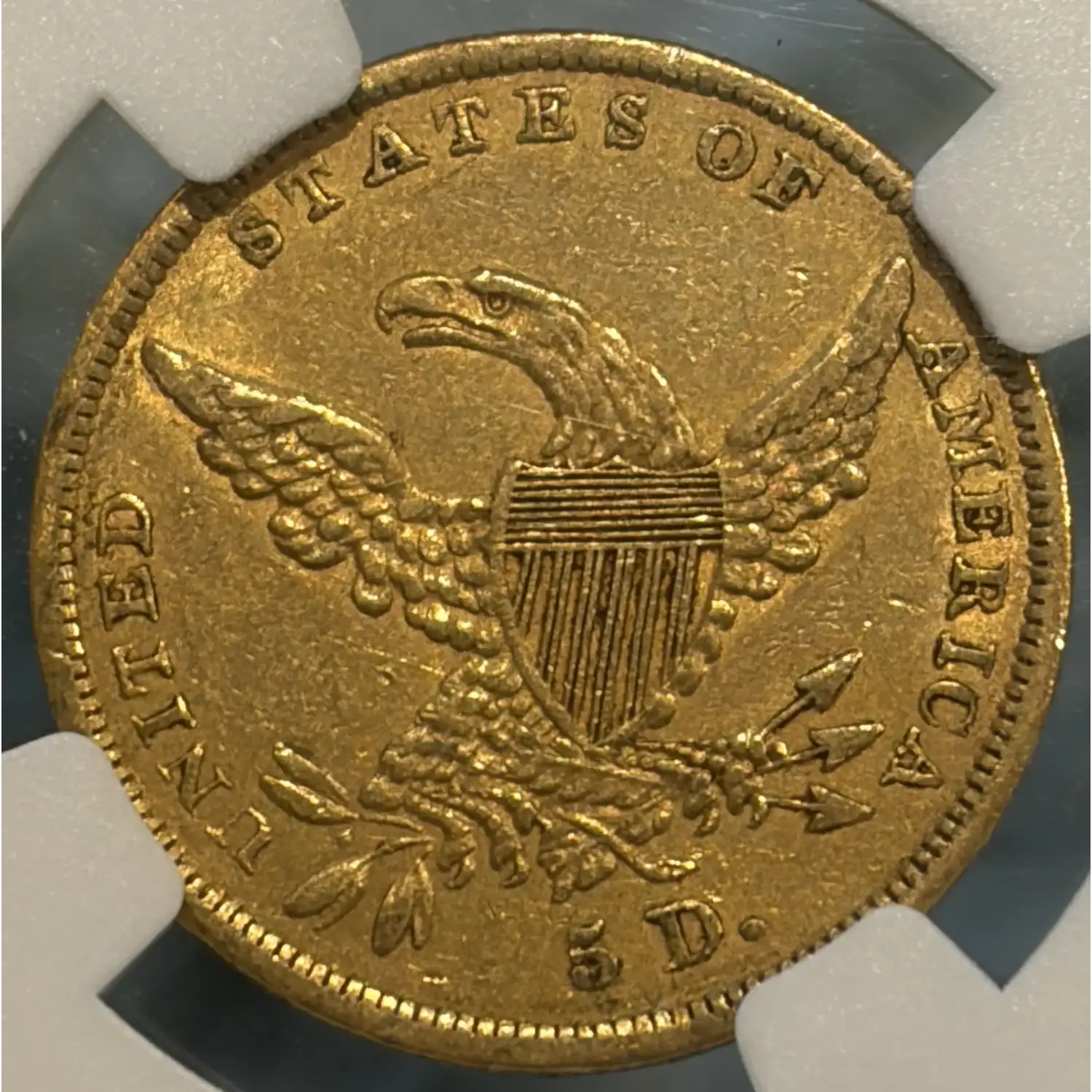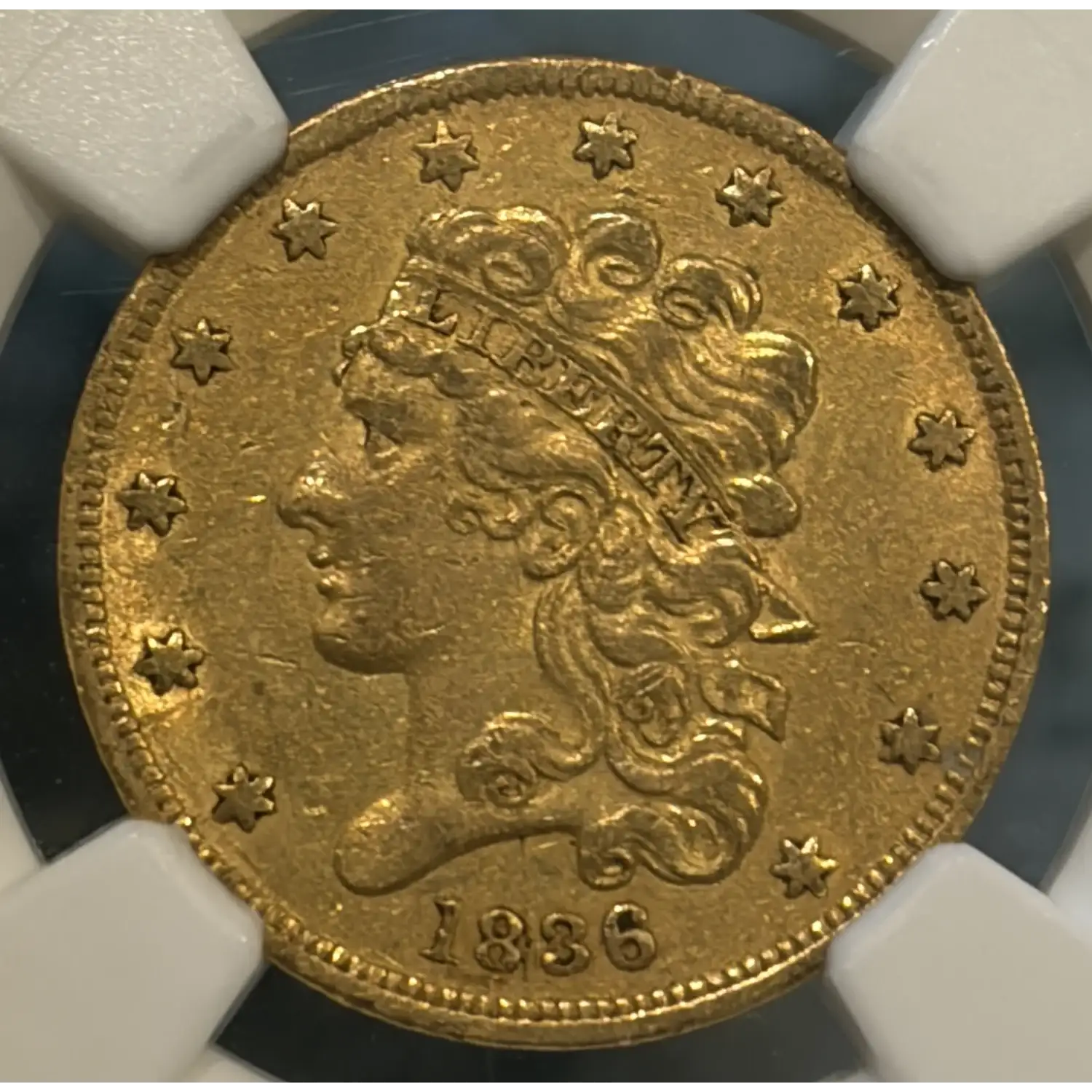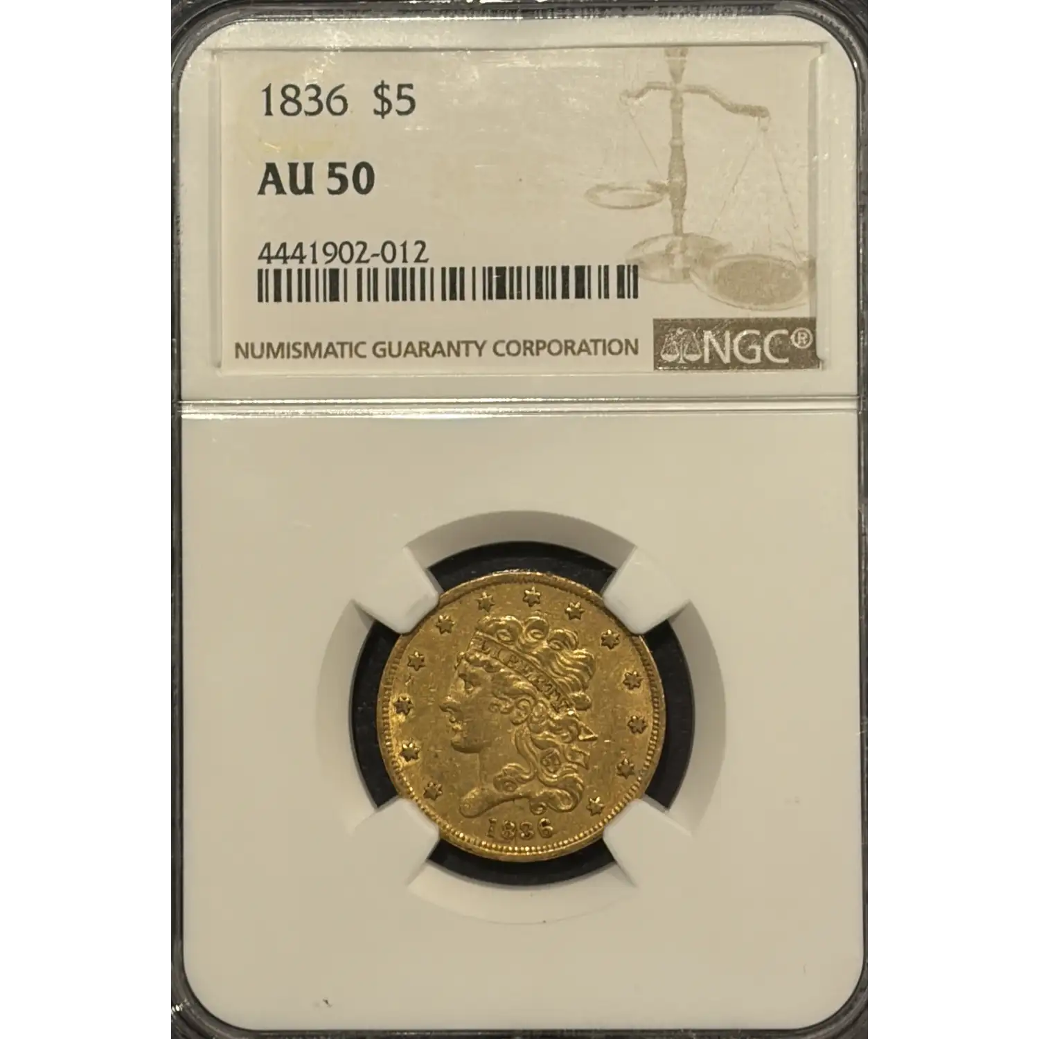 1836 $5 GOLD HALF EAGLE NGC AU50