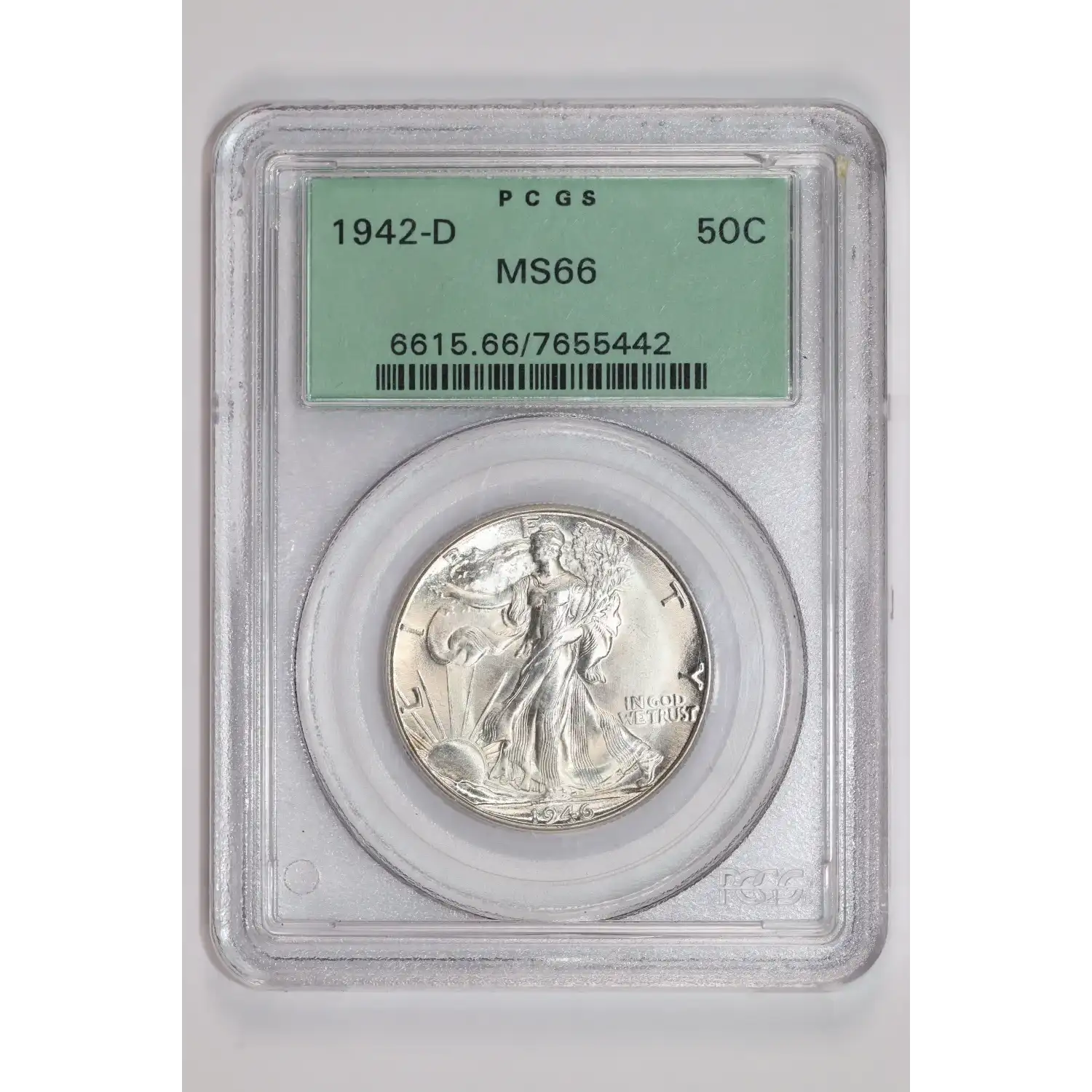 1942-D WALKING LIBERTY HALF DOLLAR PCGS MS66 OGH