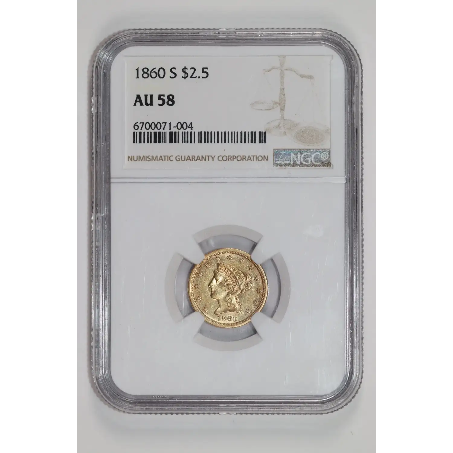 1860-S $2.5 GOLD LIBERTY QUARTER EAGLE NGC AU58