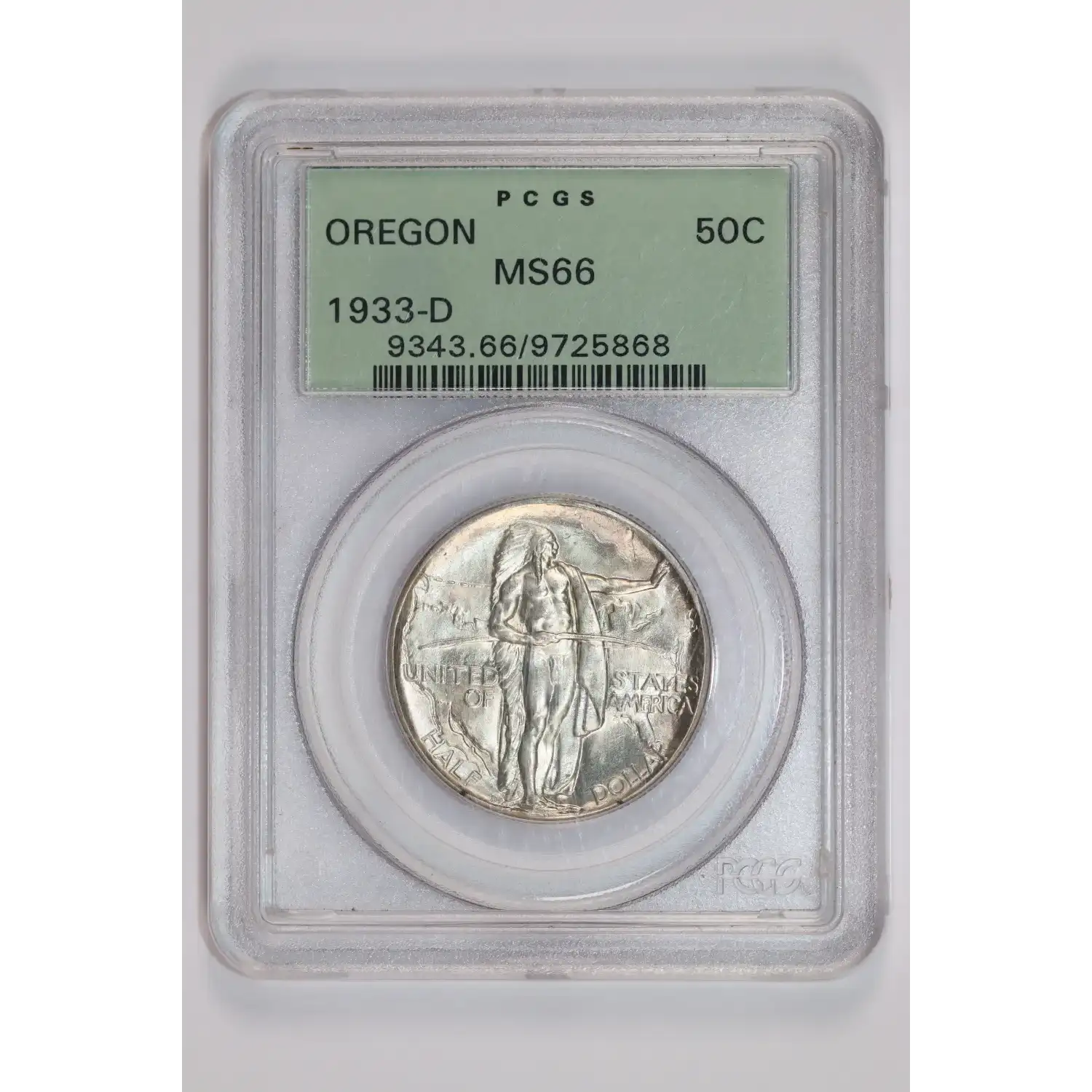 1933-D OREGON COMMEMORATIVE HALF DOLLAR PCGS MS66 OGH