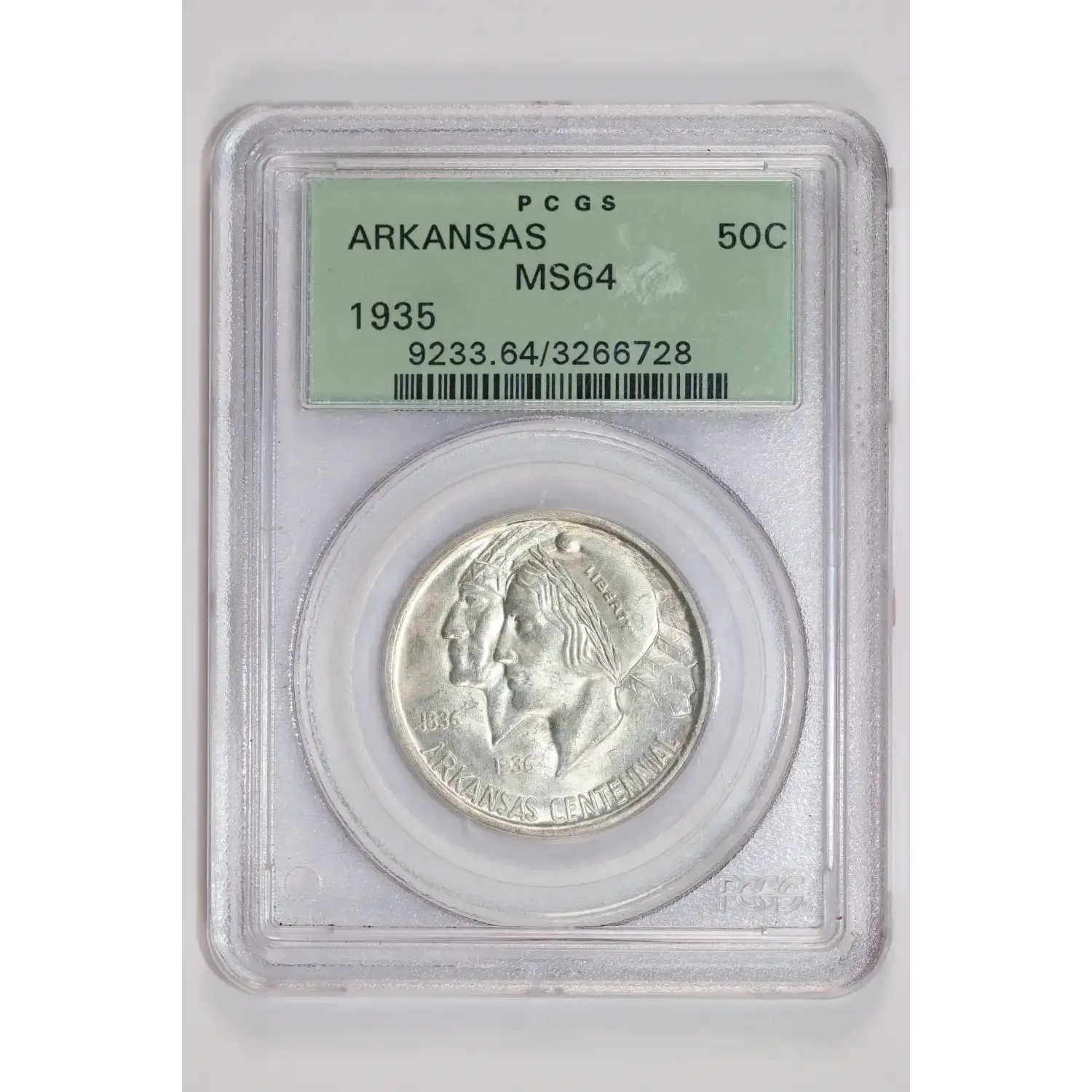 1935 ARKANSAS COMMEMORATIVE HALF DOLLAR PCGS MS64 OGH