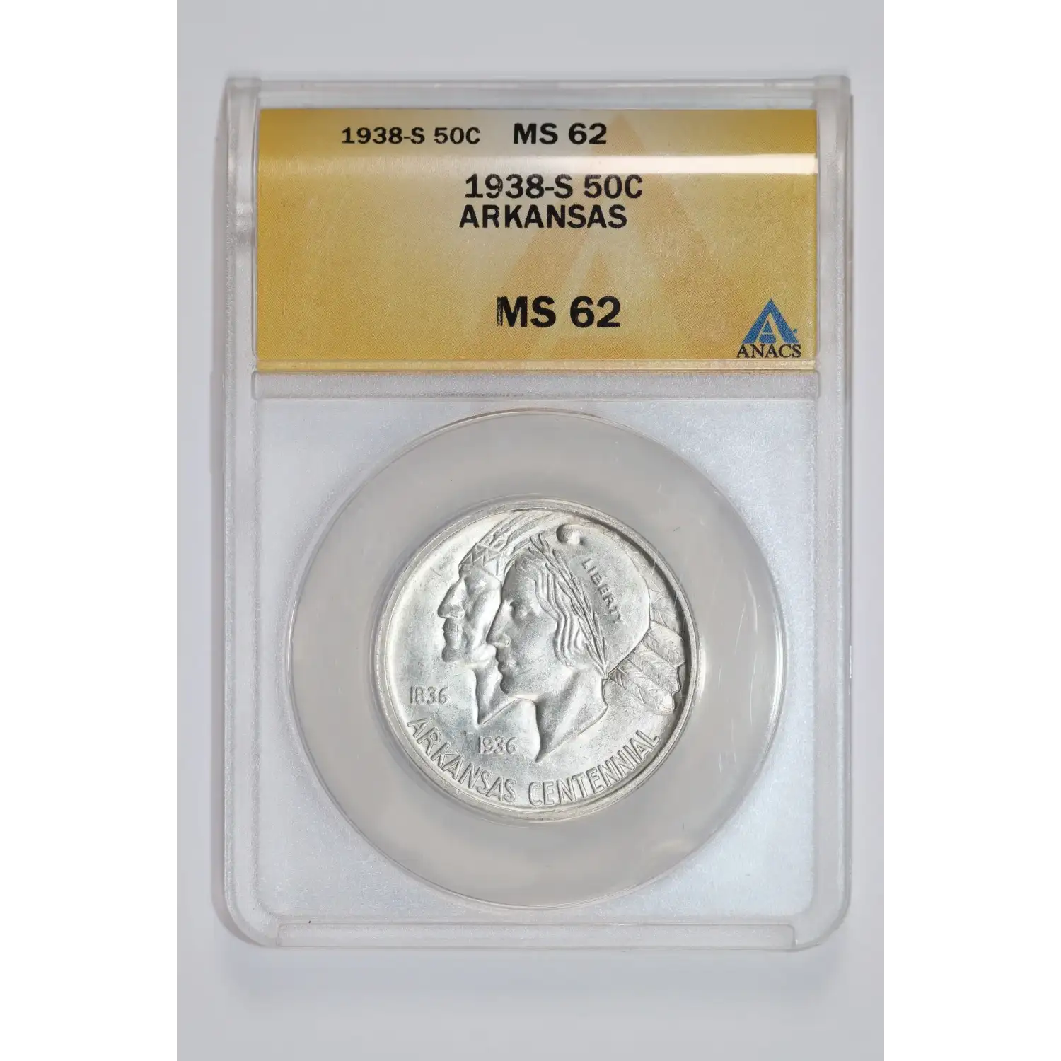 1938-S ARKANSAS COMMEMORATIVE HALF DOLLAR ANACS MS62