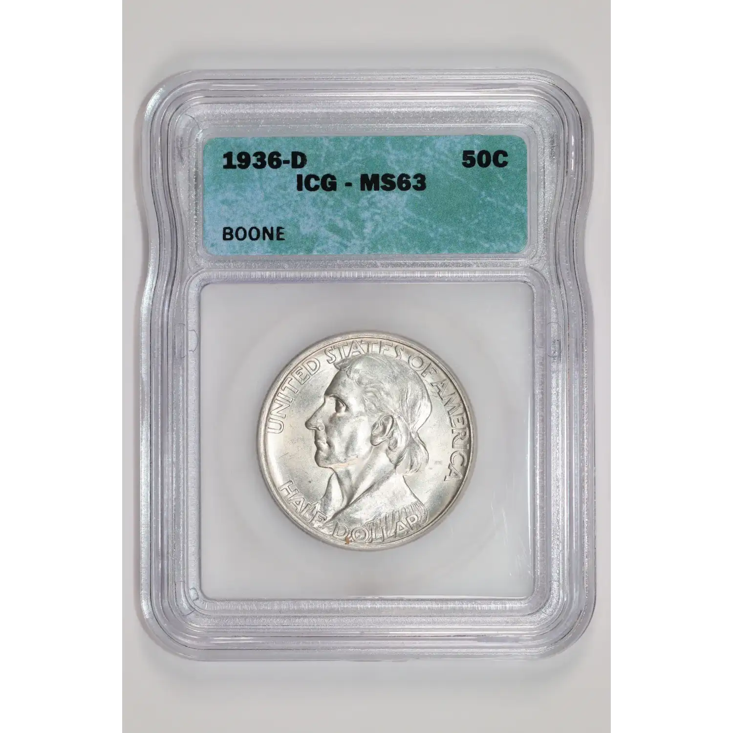 1936-D BOONE COMMEMORATIVE HALF DOLLAR ICG MS63